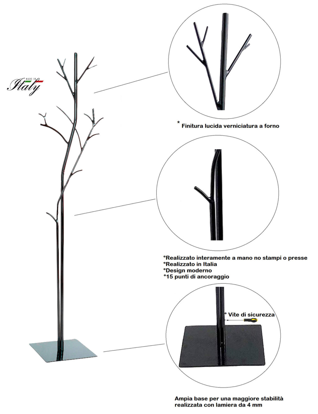 Appendiabiti da terra in ferro battuto modello Platano realizzato in Italia.