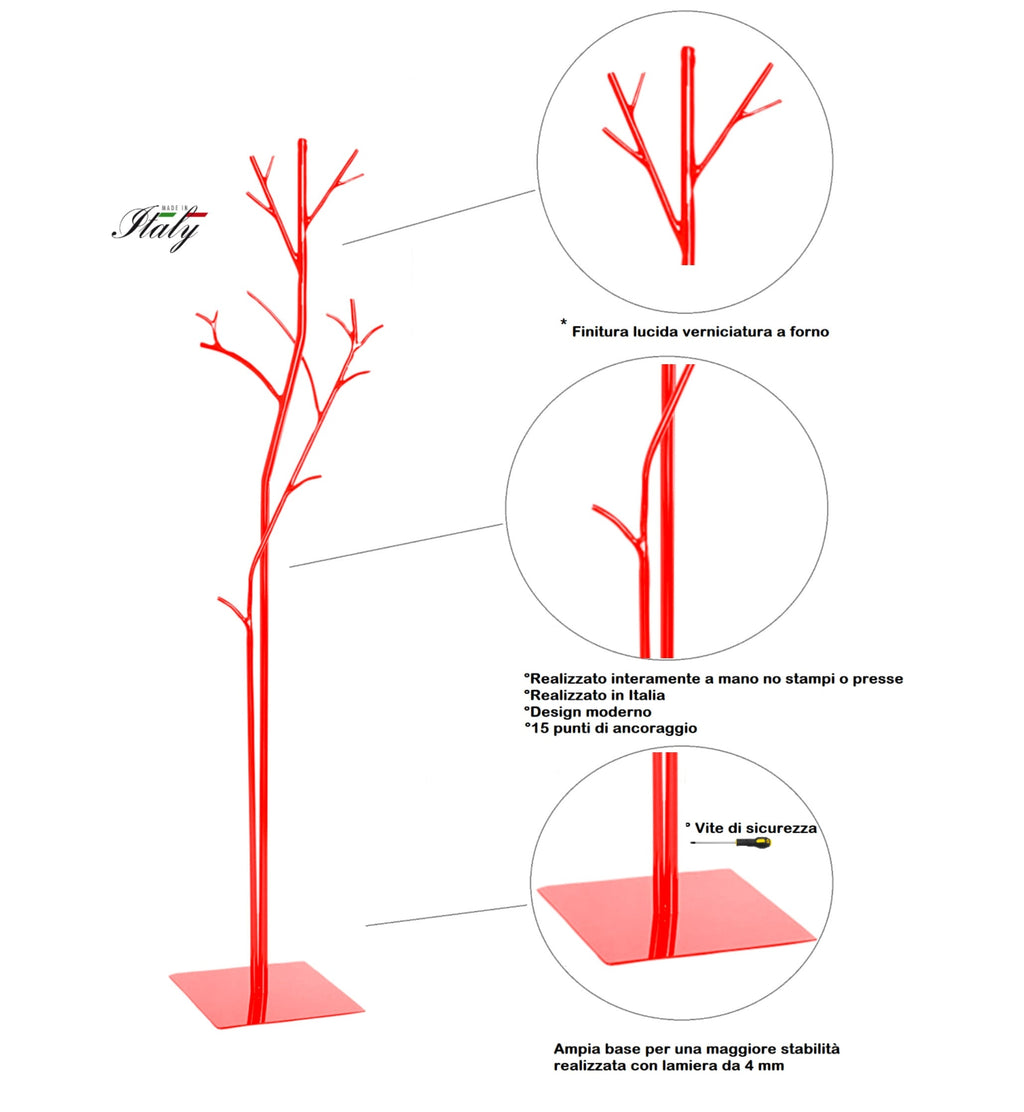 Appendiabiti da Terra 33x33x178 cm in Ferro Battuto Vasconi Platano Rosso