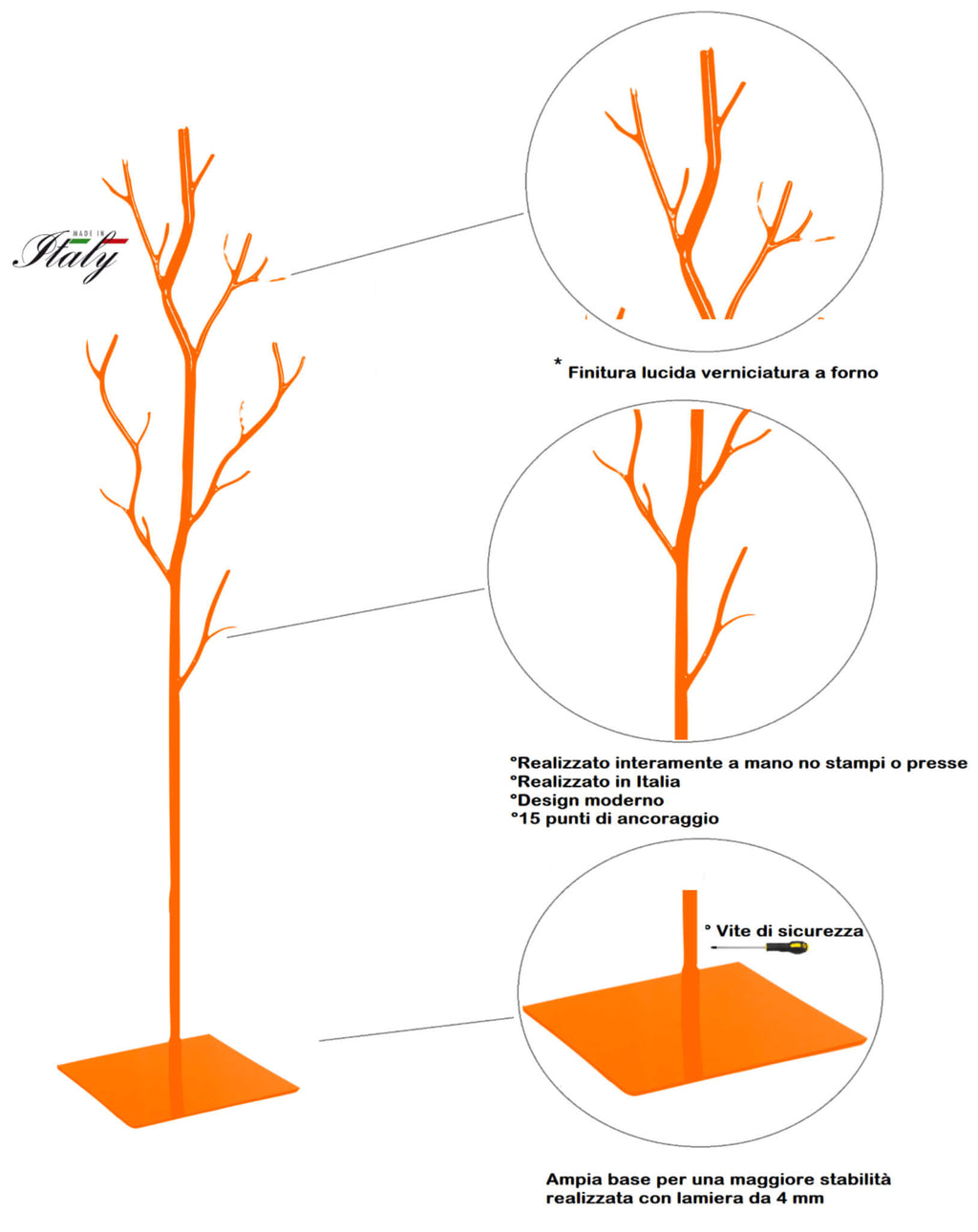 Appendiabiti da Terra 33x33x178 cm in Ferro Battuto Vasconi Salice Arancione