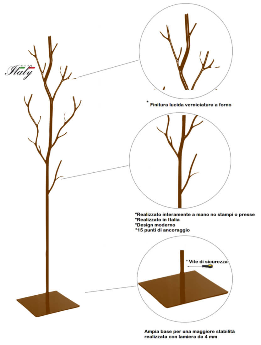 Appendiabiti da terra in ferro battuto modello Salice realizzato in Italia.