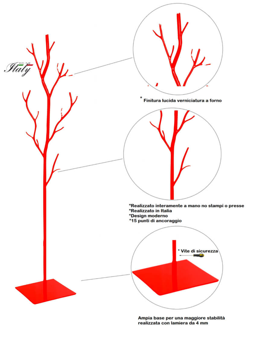 Appendiabiti da Terra 33x33x178 cm in Ferro Battuto Vasconi Salice Rosso