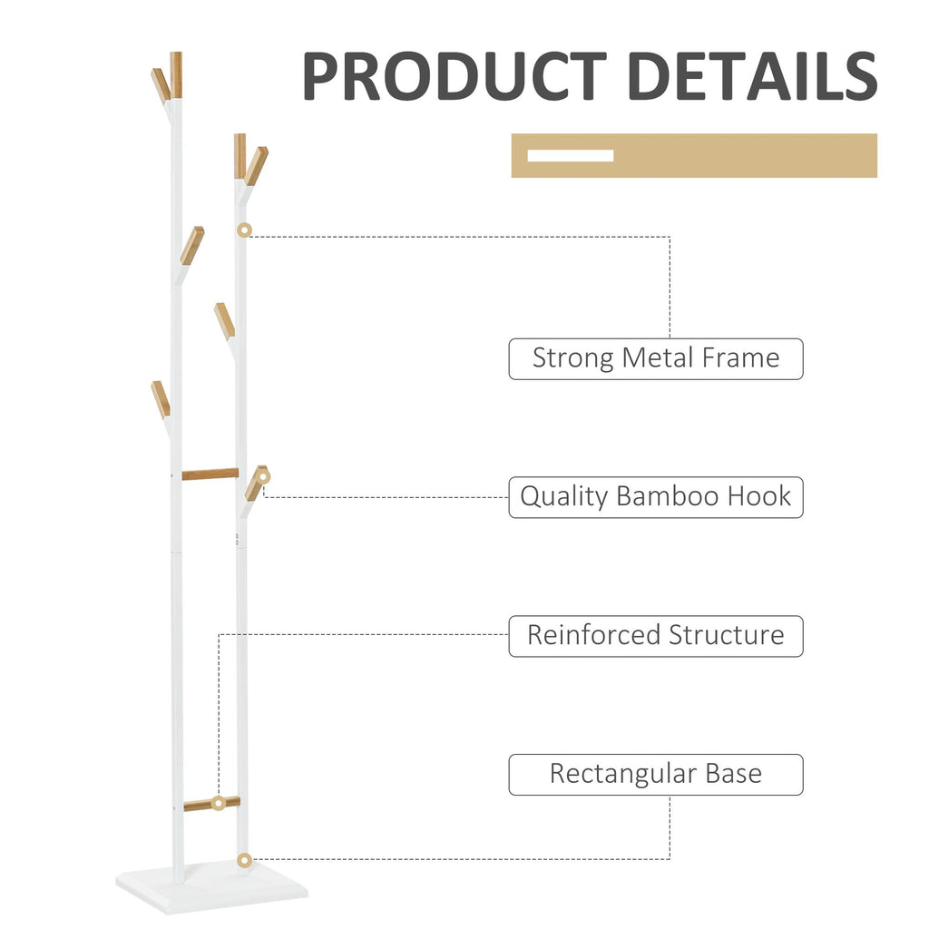Appendiabiti da Terra 34x30x183 cm in Metallo Bianco e Bambù