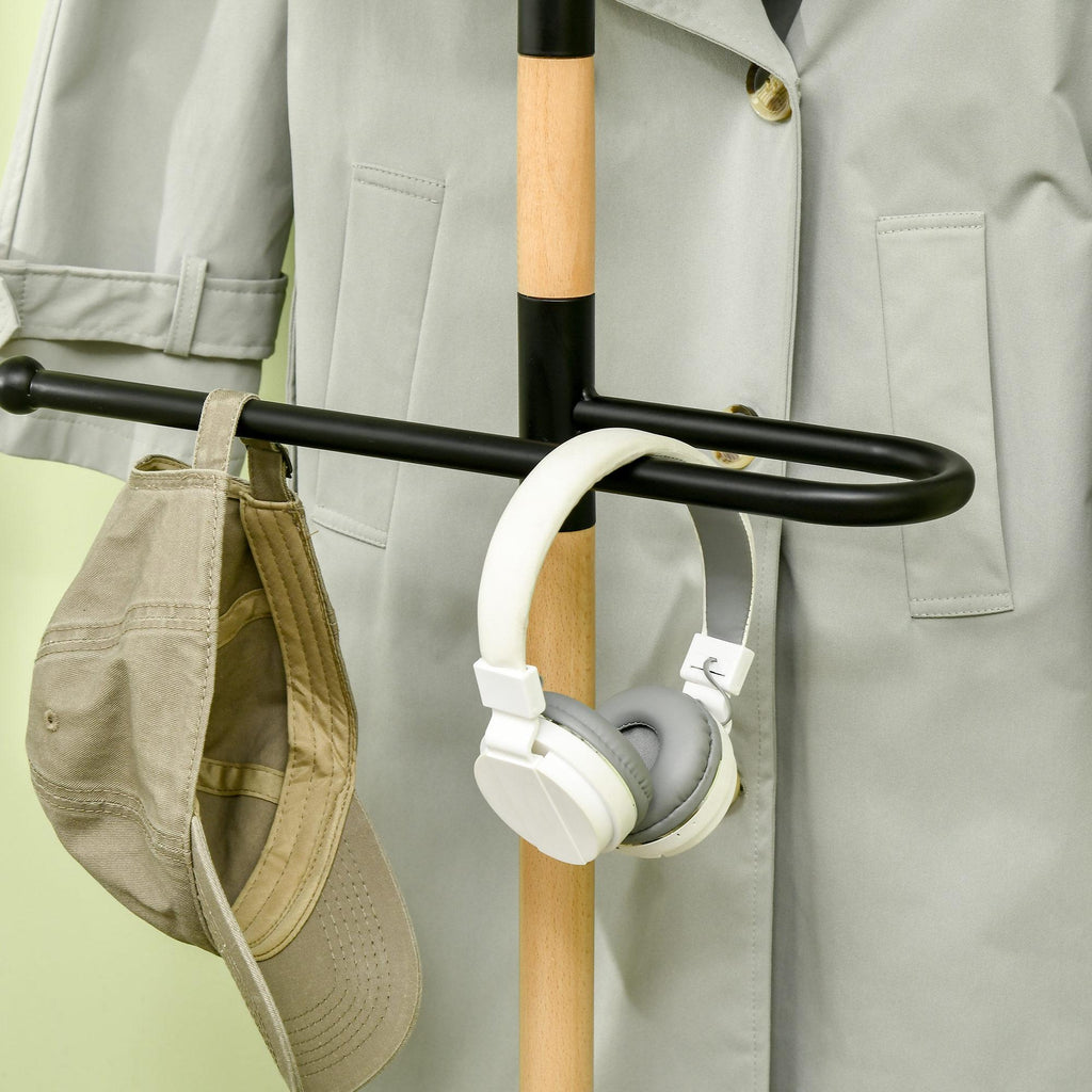 Appendiabiti da Terra 46x35x152 cm in Legno e Acciaio con Mensola e Gruccia Nero