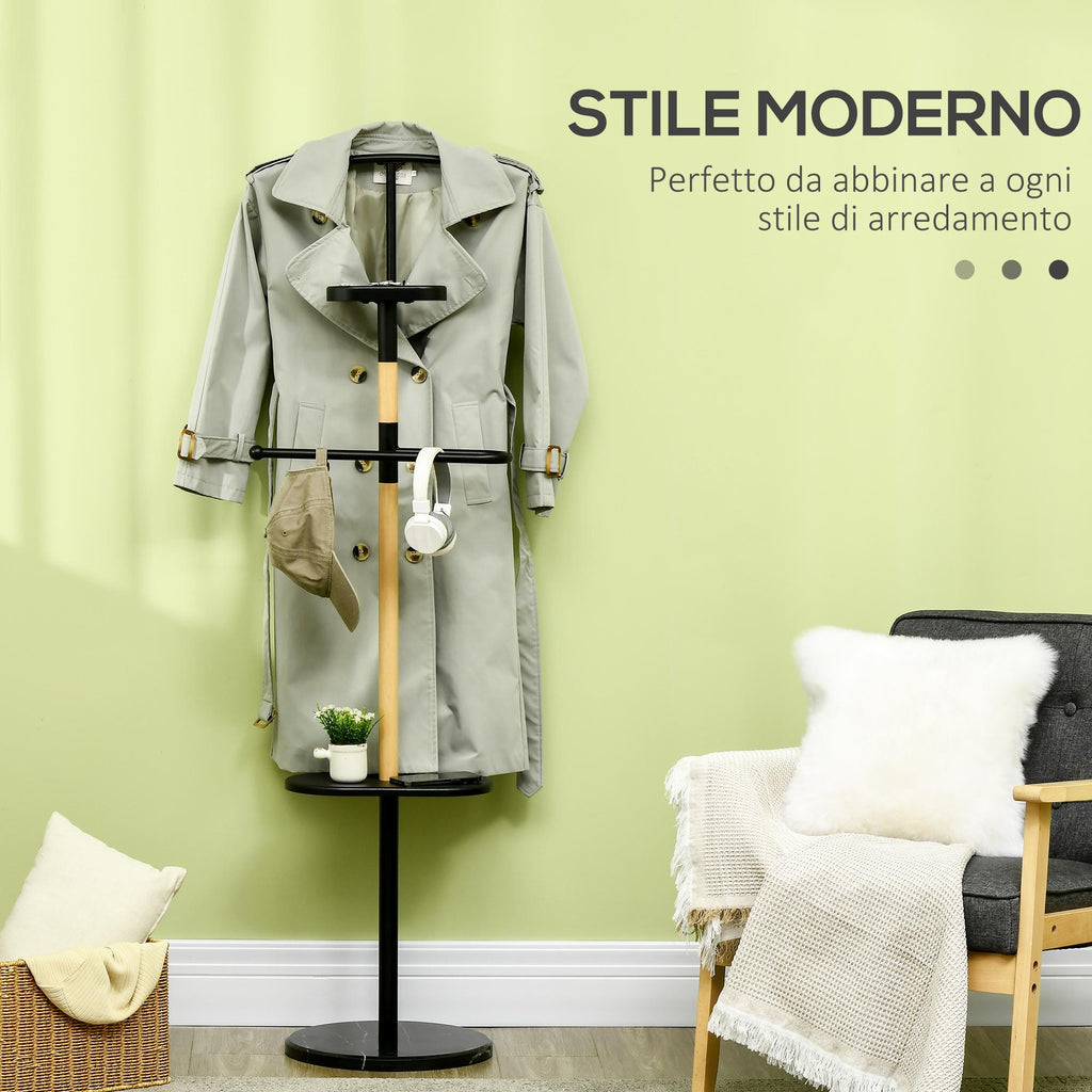 - DESIGN SEMPLICE ED ELEGANTE: Con il suo stile moderno e minimalista, questo appendi abiti è perfetto da posizionare nell'ingresso, in salotto o in camera da letto. Inoltre, l'abbinamento di legno, base effetto marmo e rivestimento nero aggiungono un tocco di stile