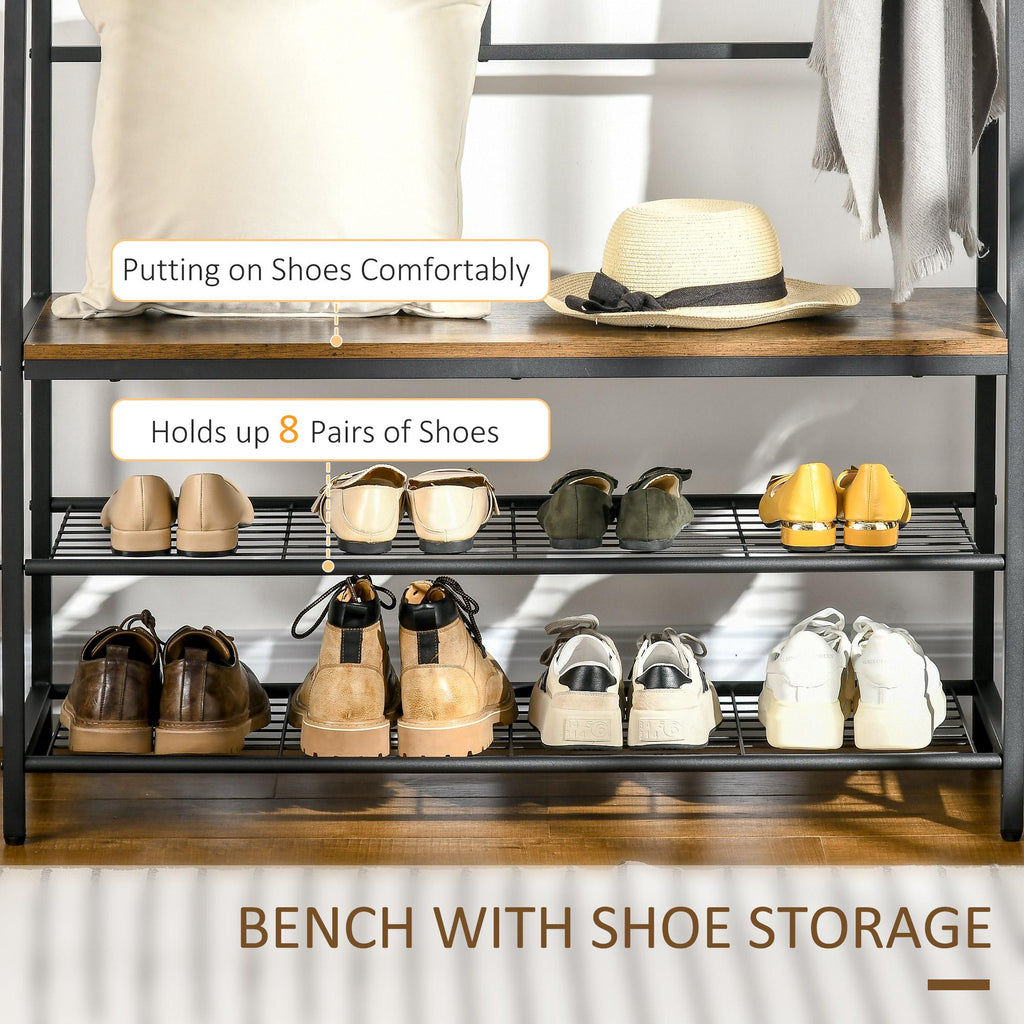 Appendiabiti da Terra 98x36x185 cm con Scarpiera e Panca in Legno e Acciaio Marrone