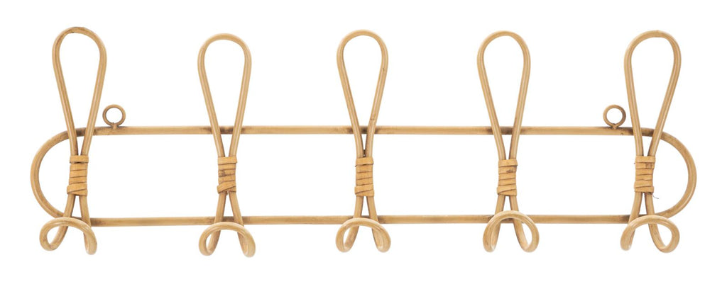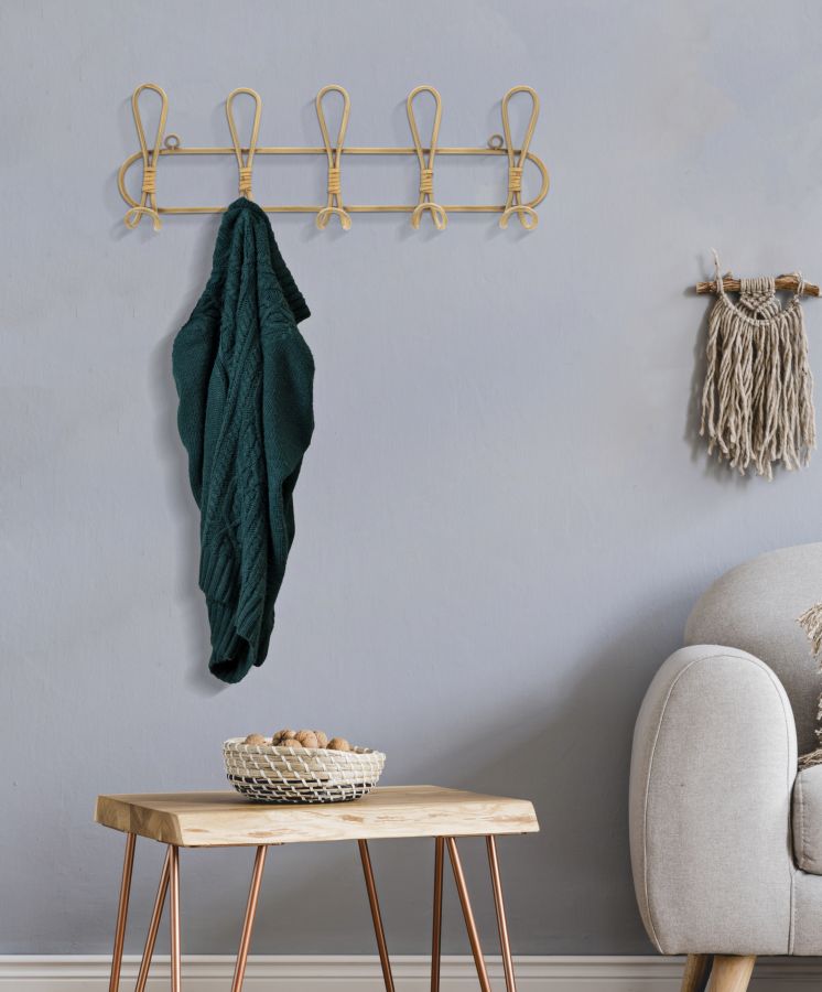 Questo appendiabiti da parete in metallo con finiture in rattan è caratterizzato da un design elegante e raffinato. Realizzato con cura, presenta una lavorazione che richiama l'intreccio del bamboo, donando un tocco di originalità e naturalezza all'ambiente. I suoi 5 ganci consentono di appendere comodamente abiti e accessori, garantendo ordine e funzionalità. Un'aggiunta perfetta per arricchire con stile ogni ingresso o camera da letto.