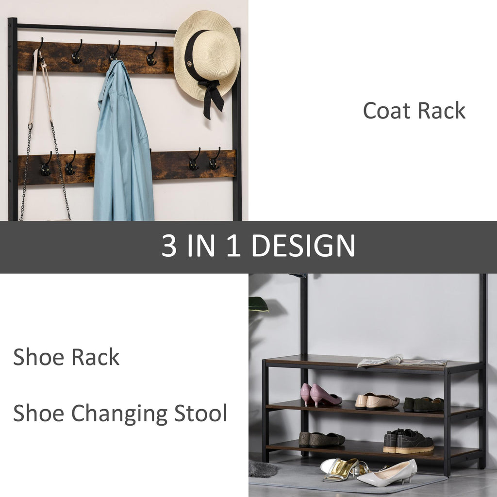 Appendiabiti Panchina per Ingresso con Scarpiera 100x40x184 cm in Metallo Nero e Marrone