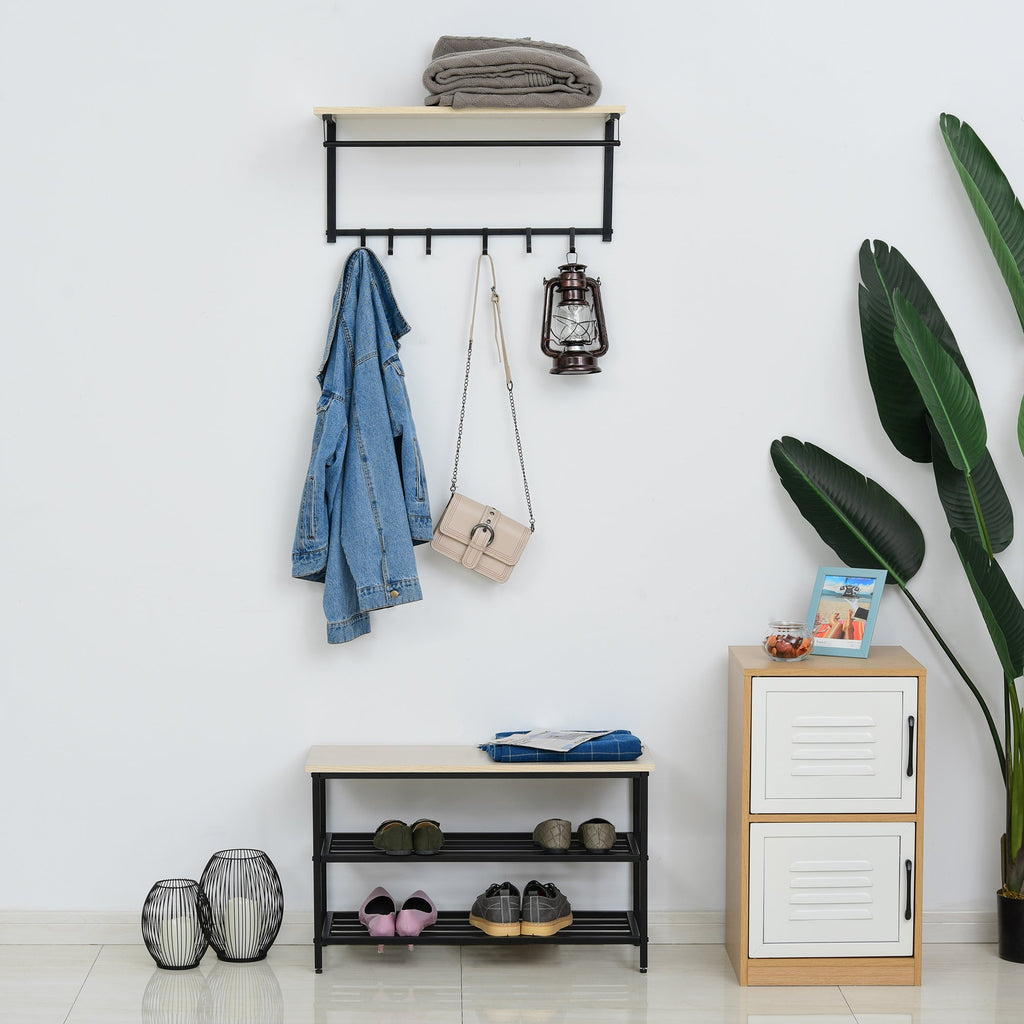 Appendiabiti Panchina per Ingresso con Scarpiera in Legno e Metallo Nero