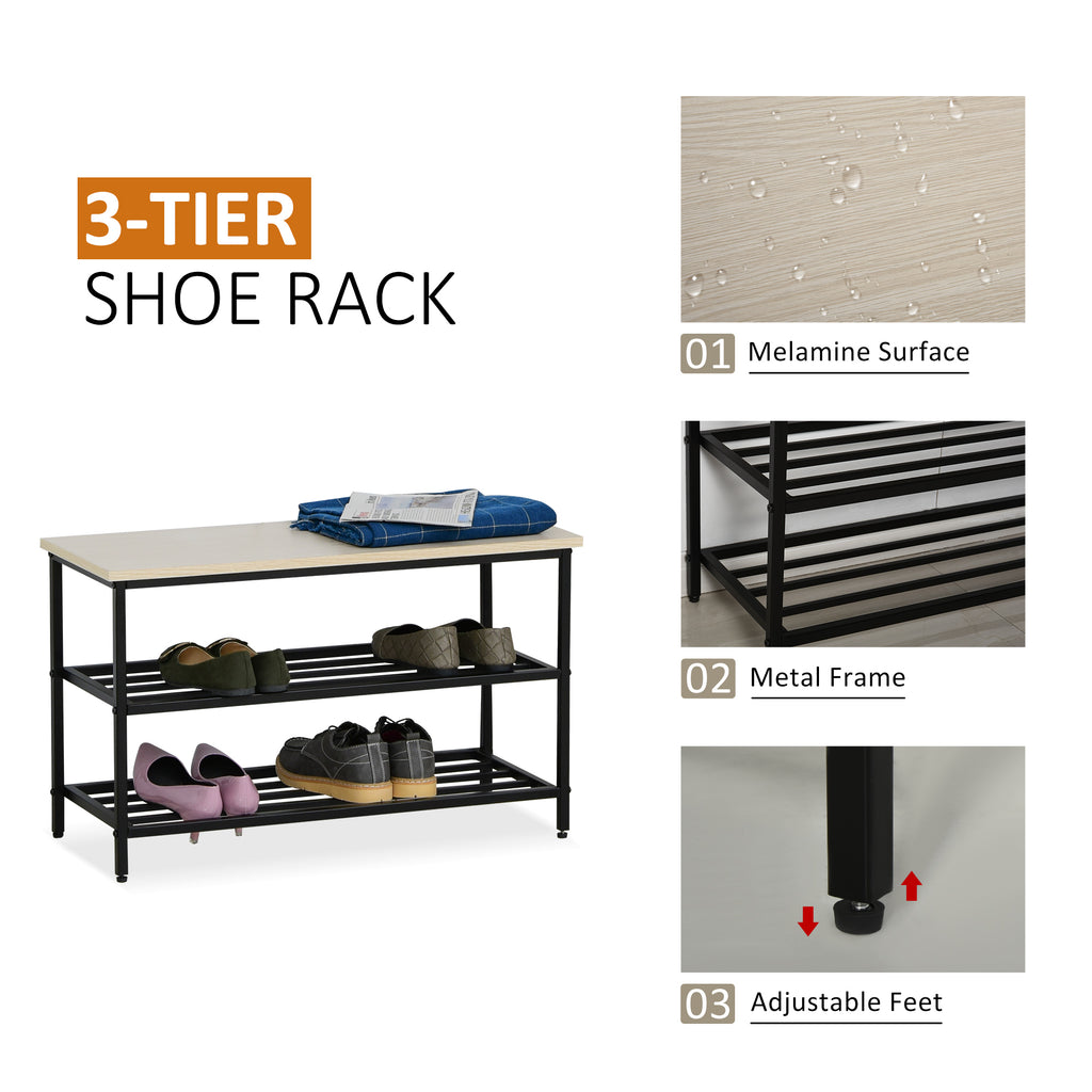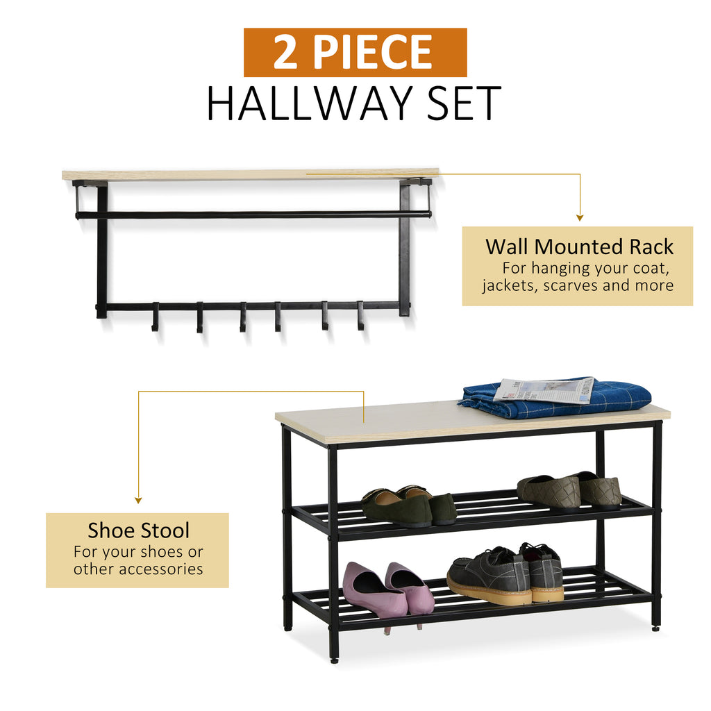Appendiabiti Panchina per Ingresso con Scarpiera In Legno e Metallo Nero