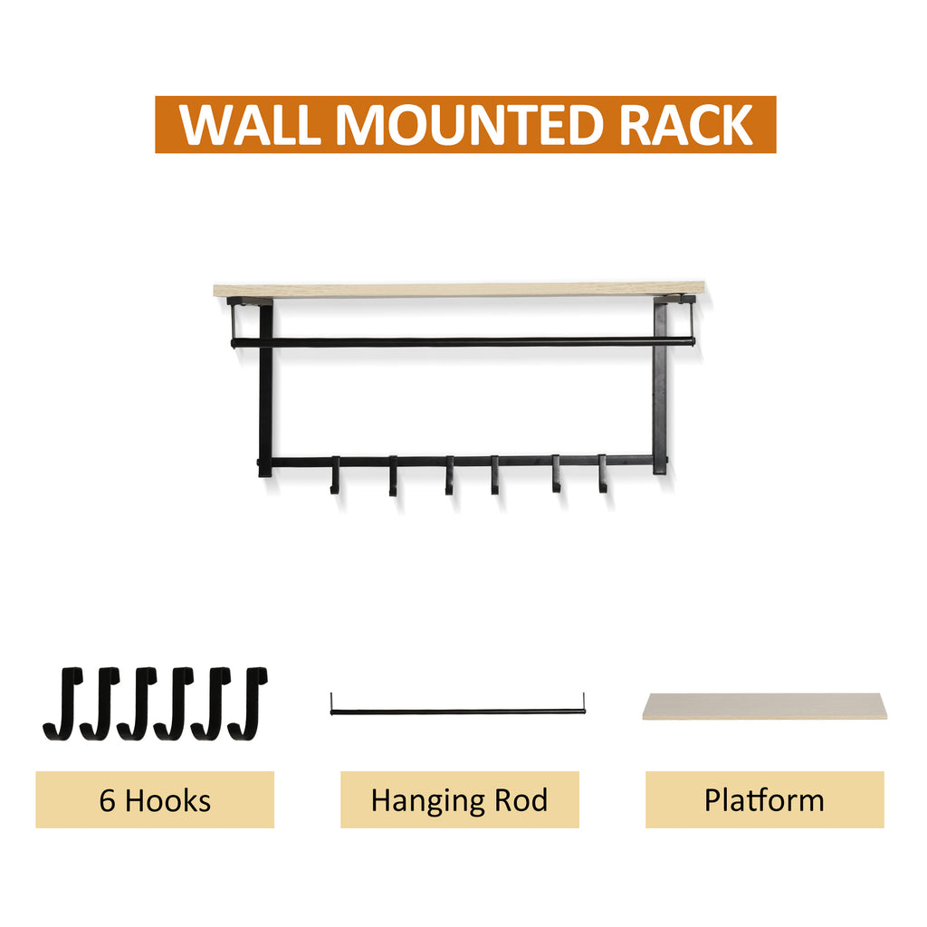 - Appendiabiti con 6 ganci, ripiano e scarpiera con 3 ripiani