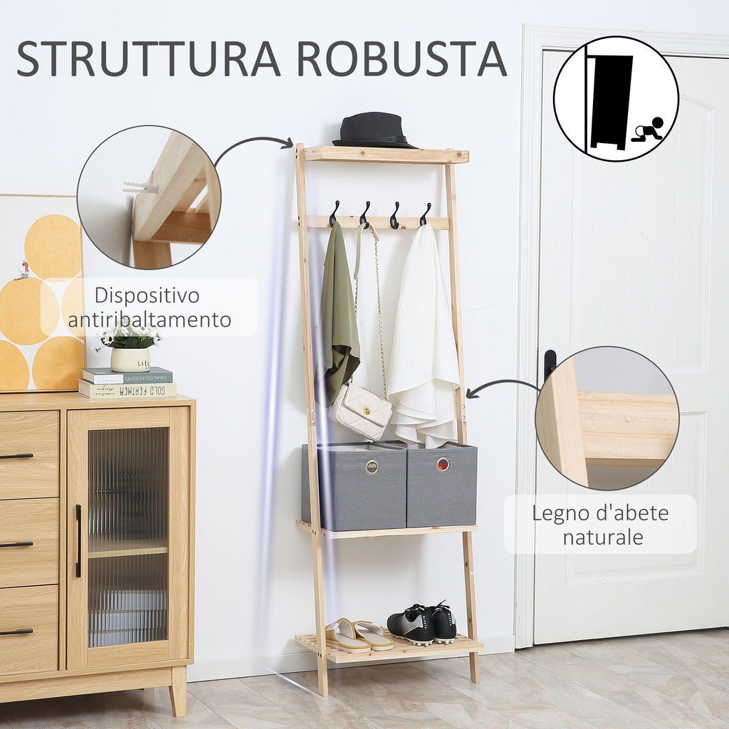 Appendiabiti per Ingresso 55x37x173 cm in Legno Naturale
