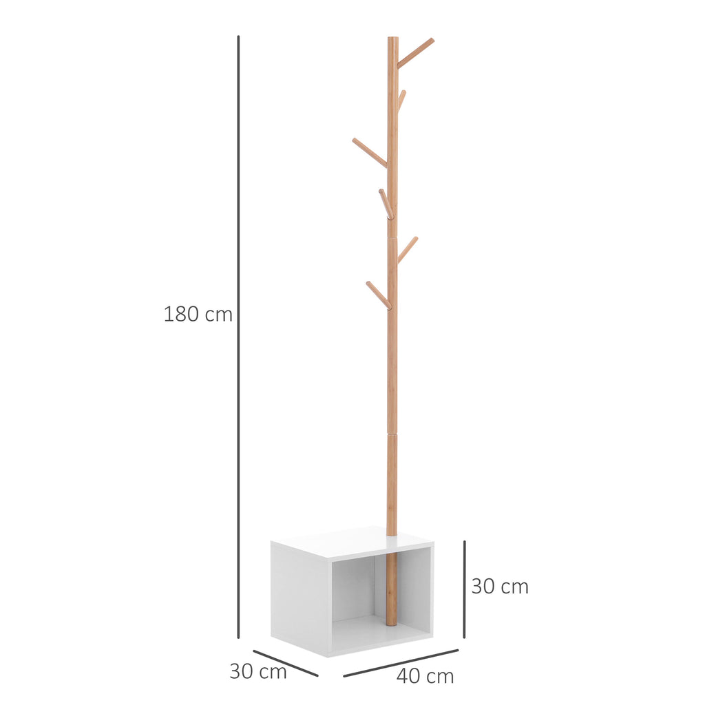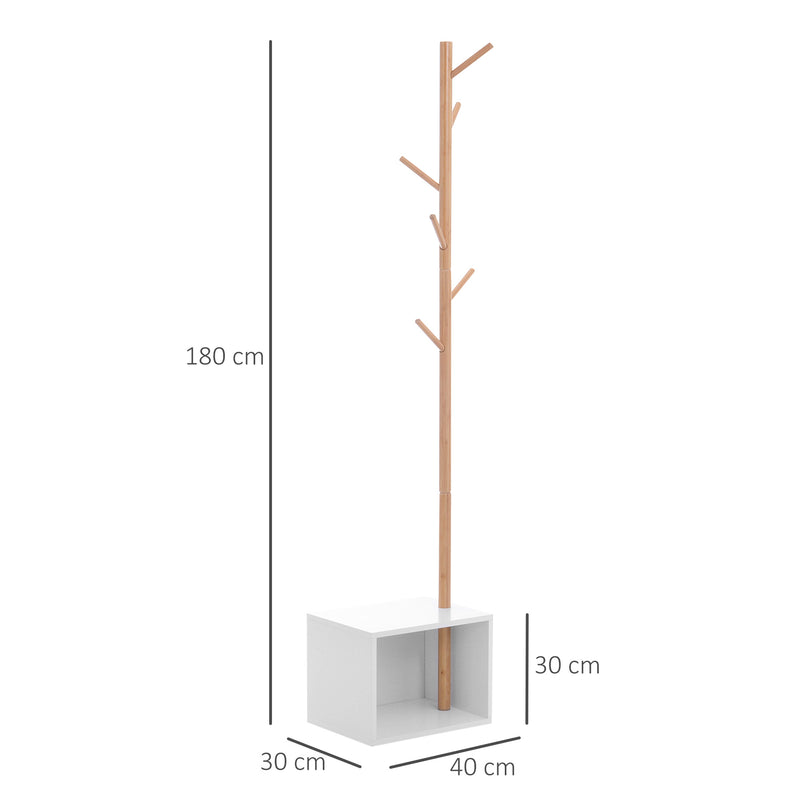 Appendiabiti Scarpiera con 6 Ganci in Bambù Bianco 40x30x180 cm