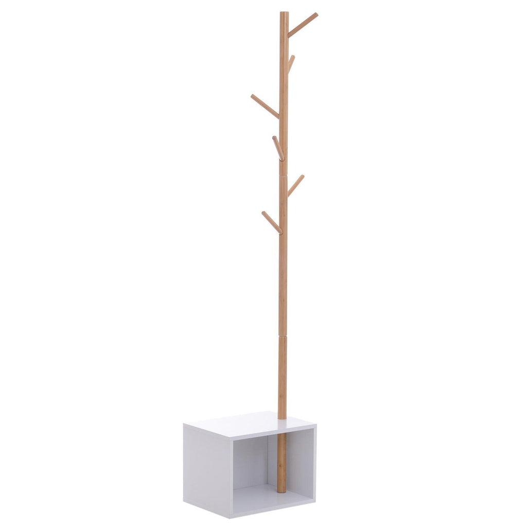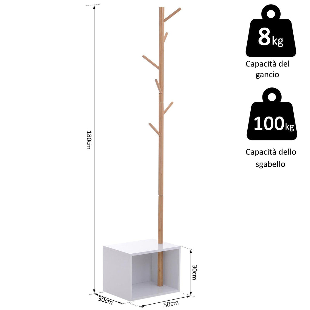 Appendiabiti Scarpiera con 6 Ganci in Bambù Bianco 50x30x180 cm