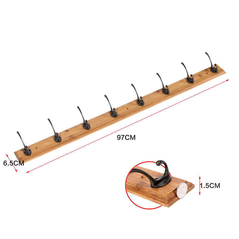Appendiabito a muro 8 ganci 97x6,5 cm in Bambù Noce/Nero