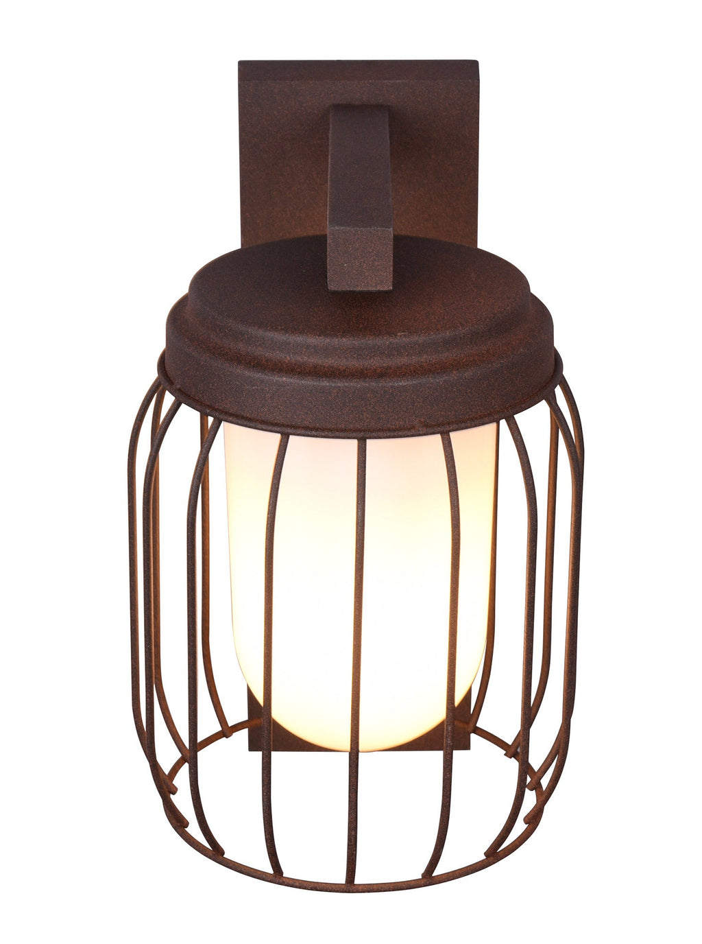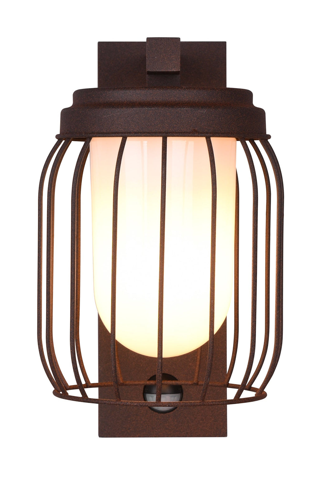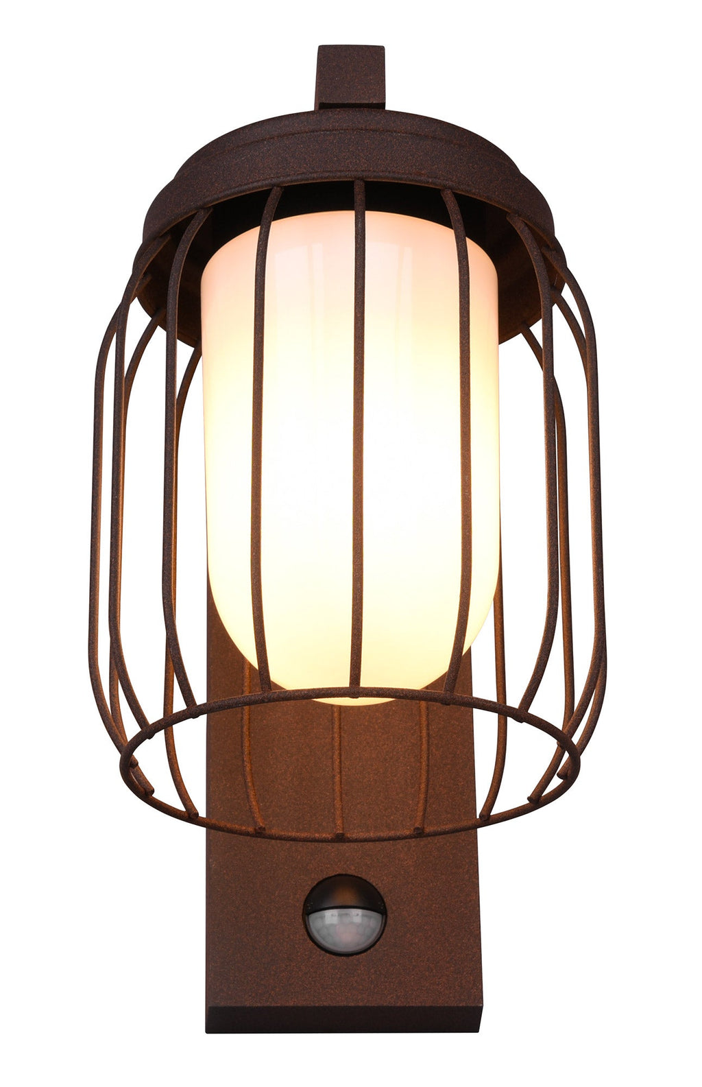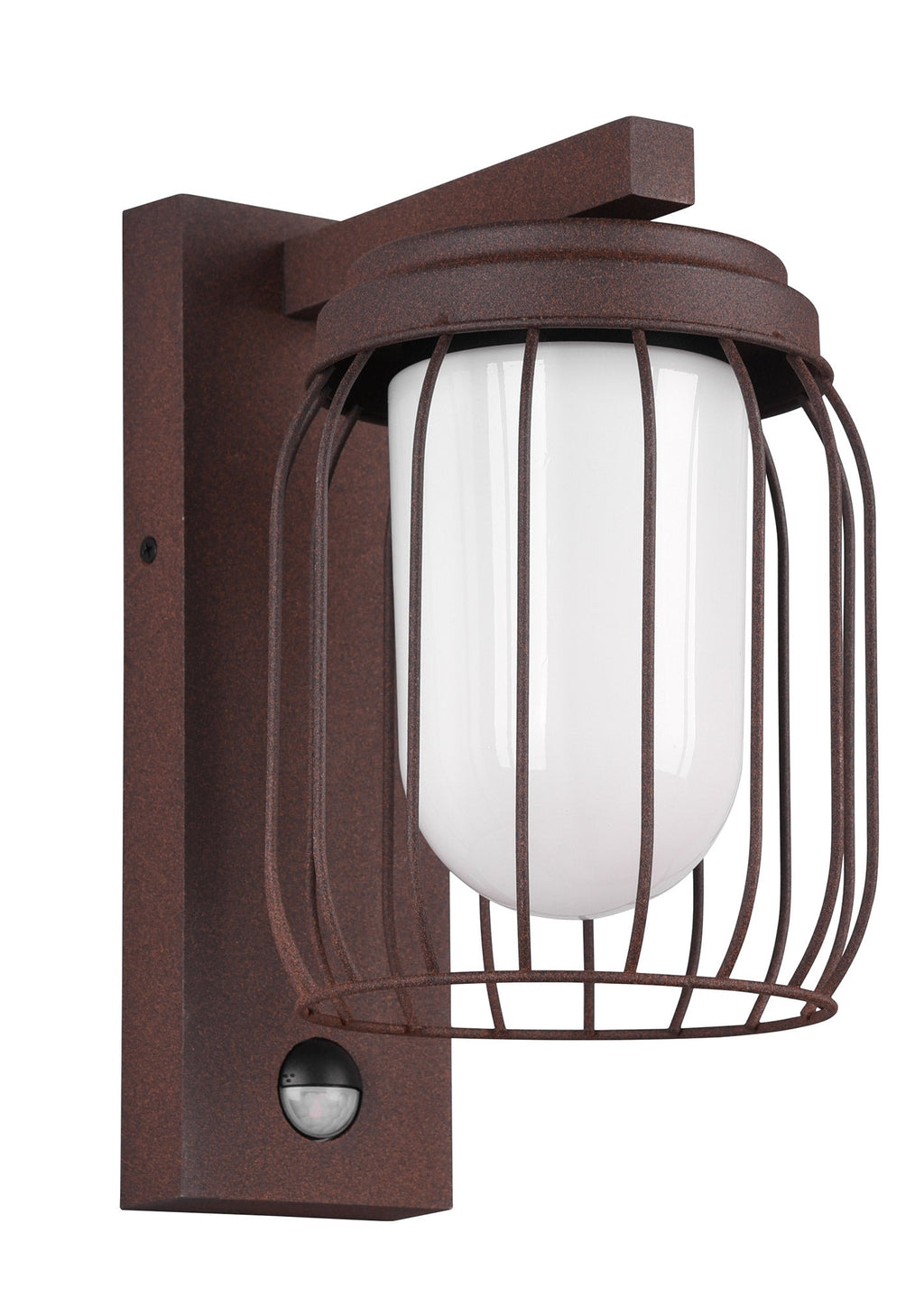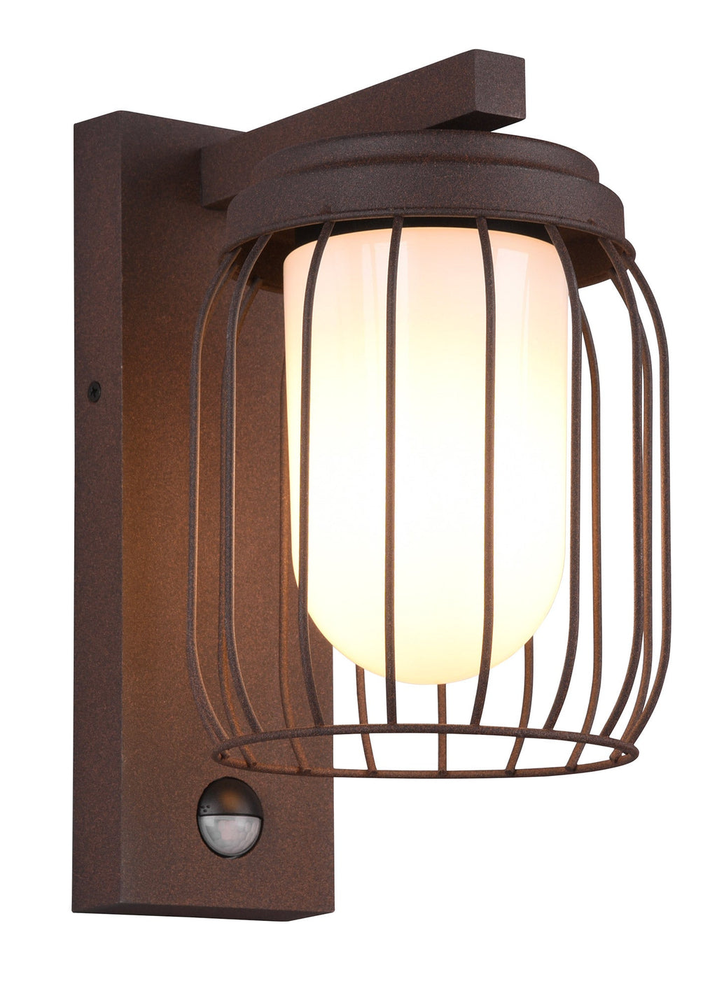 Tuela Applique Da Esterno Ruggine con Gabbia Diffusore Bianco Ip44 con Sensore Movimento H. 28Cm