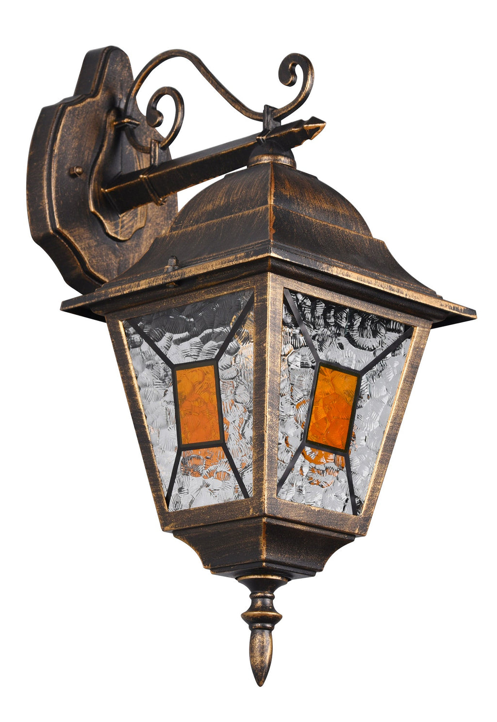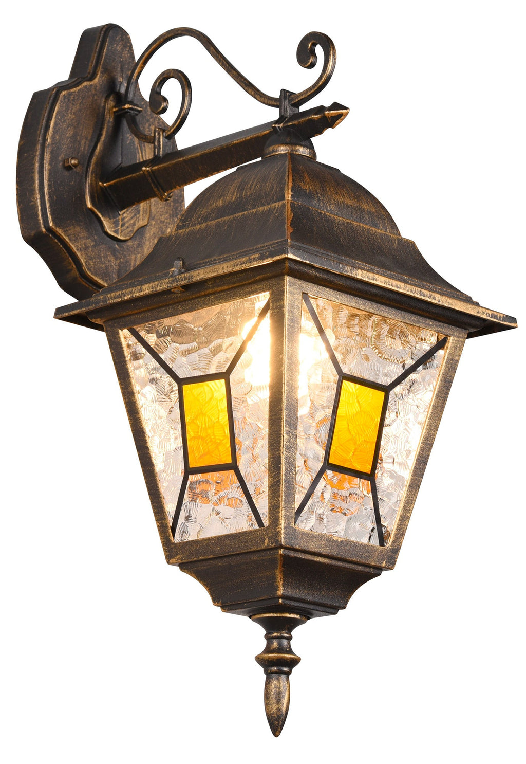 Imperia Applique Da Esterno Down 4 Lati Fusione di Alluminio Ruggine e Vetro Verniciato Effetto Ghiaccio Ed Inserto Giallo H. 45,5Cm Ip44