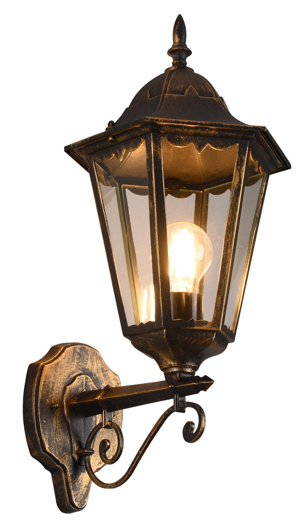 Mella Applique Da Esterno Up 6 Lati Fusione di Alluminio Ruggine e Vetro Trasparente H. 51Cm Ip44