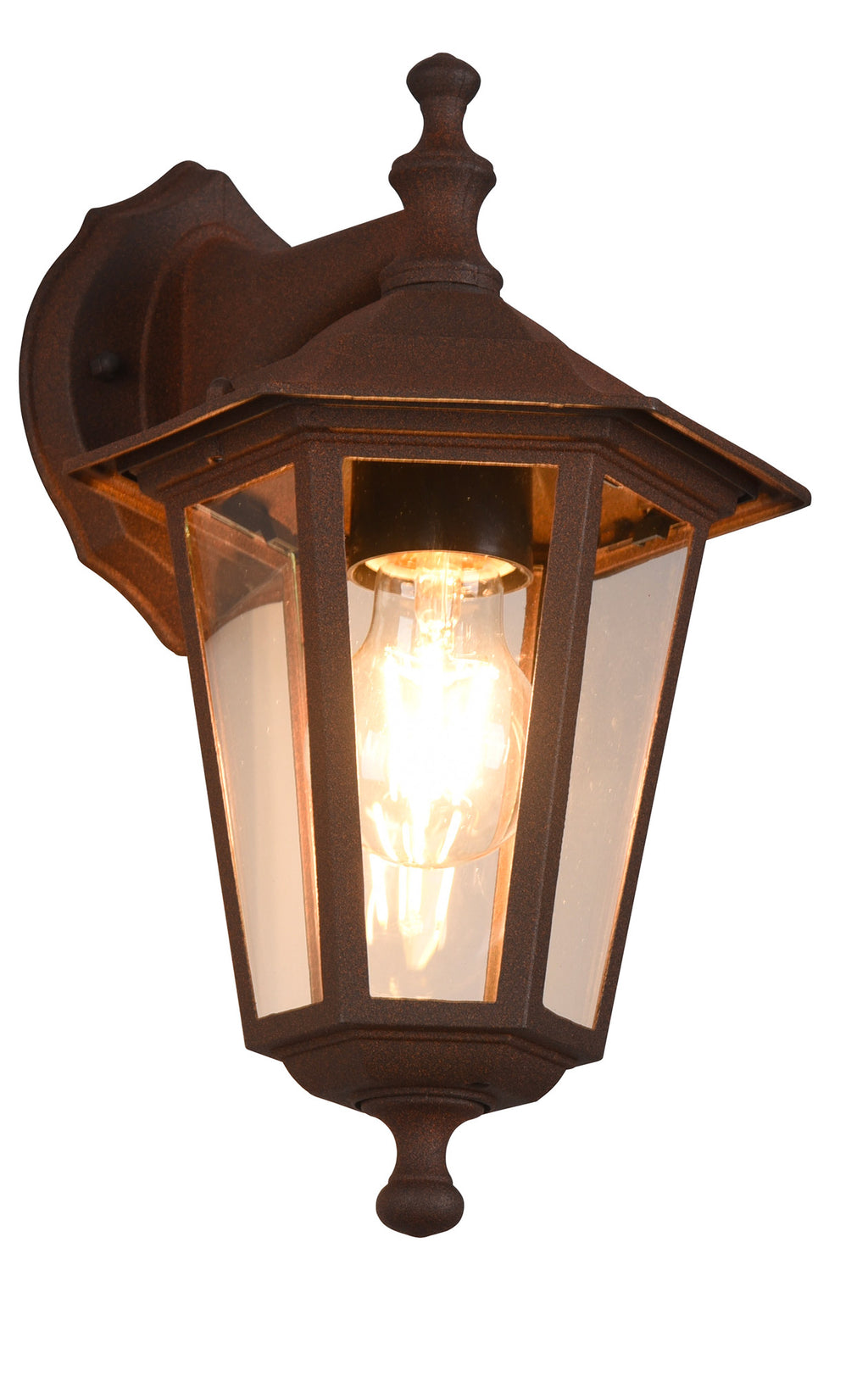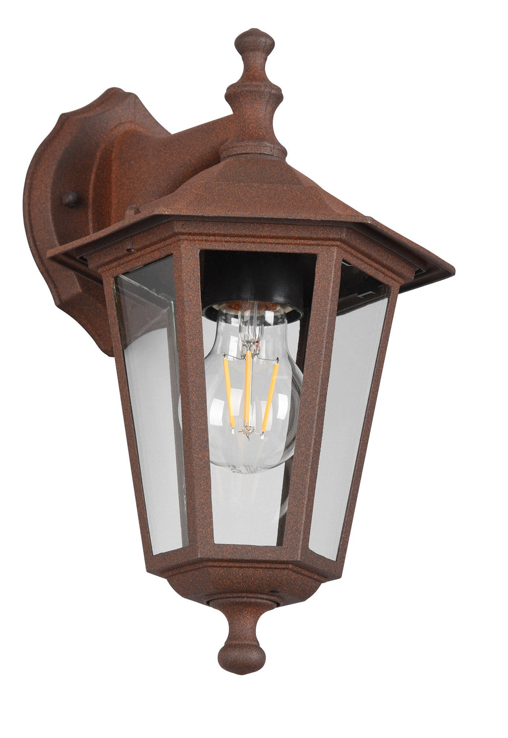 Pienza Applique Da Esterno Down 6 Lati Fusione di Alluminio Ruggine e Vetro Trasparente H. 31Cm Ip44