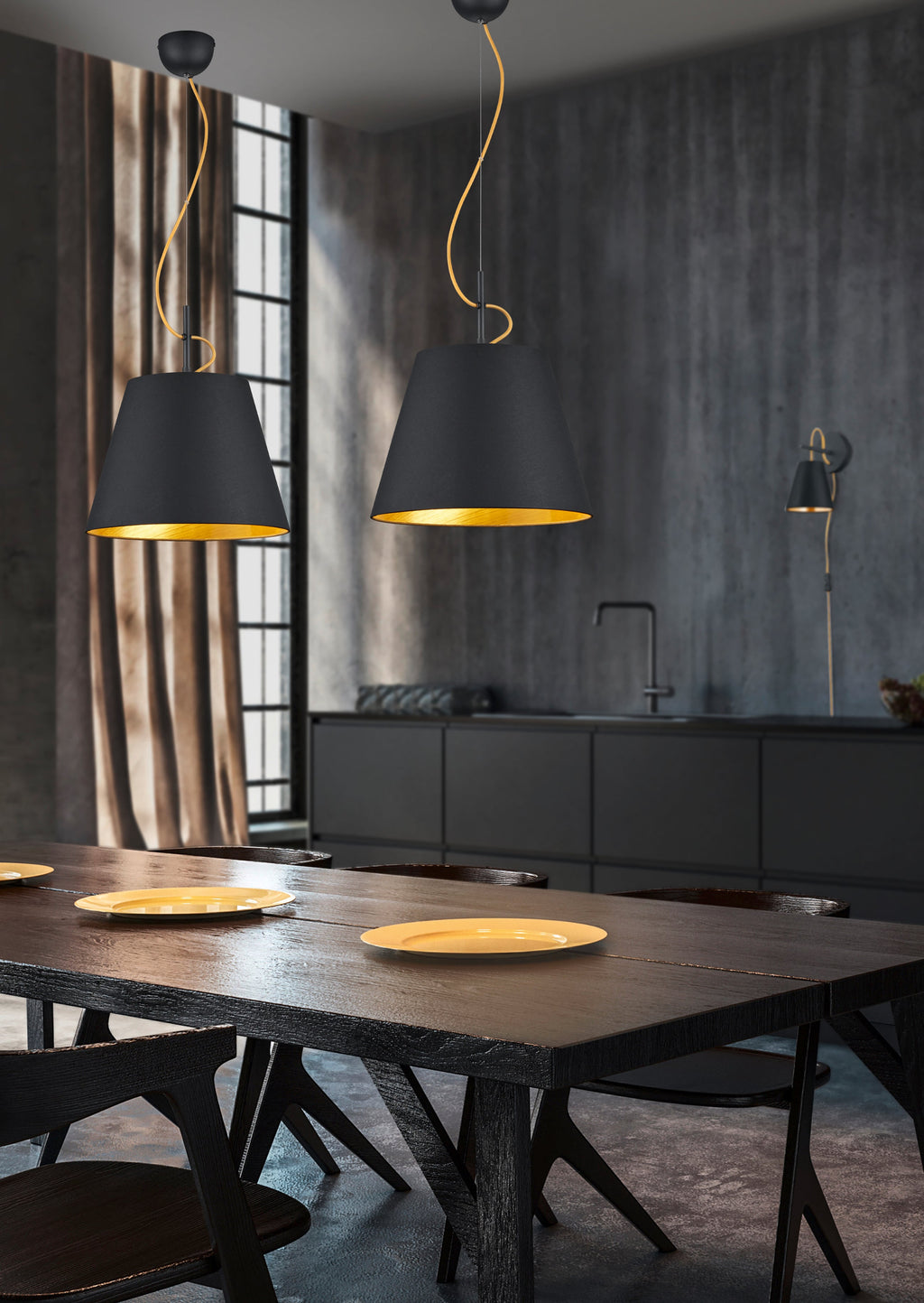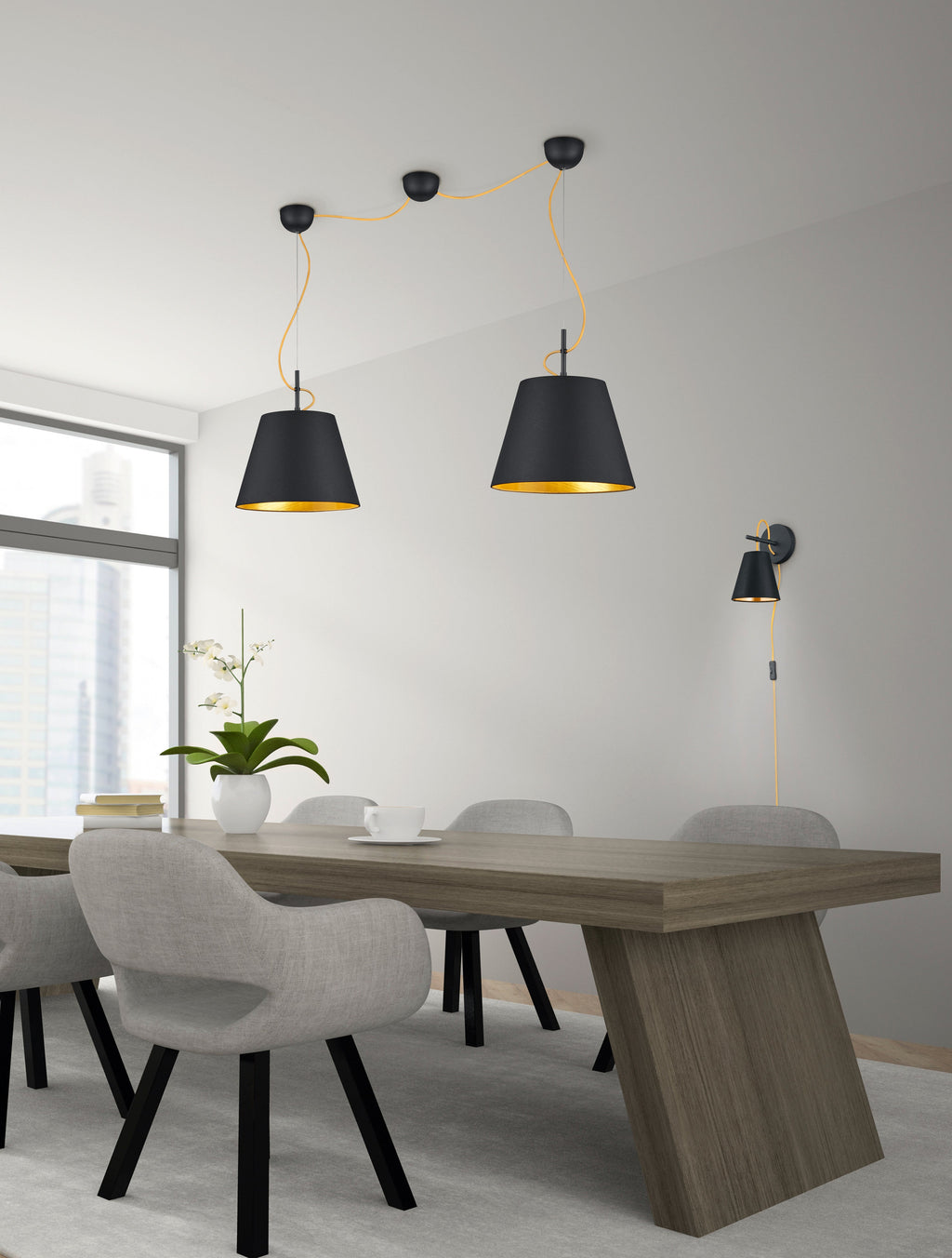 Andreus Applique Diffusore Conico Stoffa Esterno Nero Interno Oro D.15Cm, H.26,5Cm