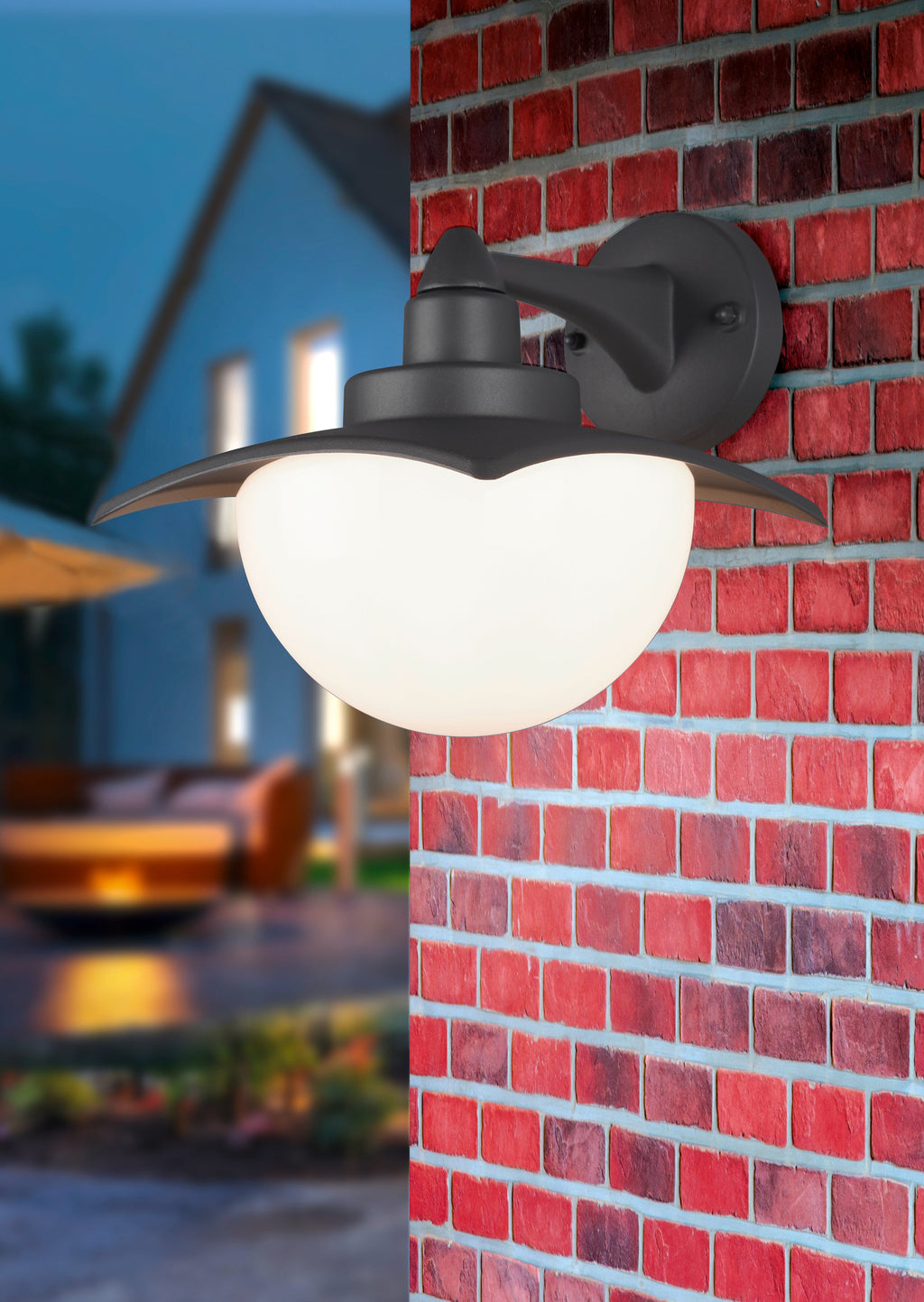 Donez Applique Da Esterno Down Fusione Di Alluminio Antracite Con Diffusore Vetro Bianco Ip44 H.21Cm