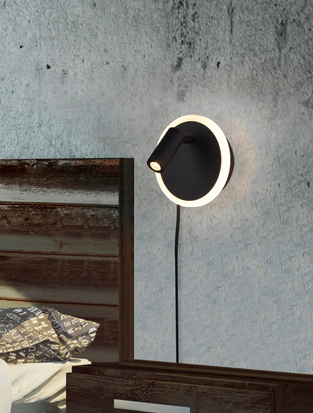 Jordan Applique Led Nera Doppia Illuminazione Con Accensione Separata D. 1Cm