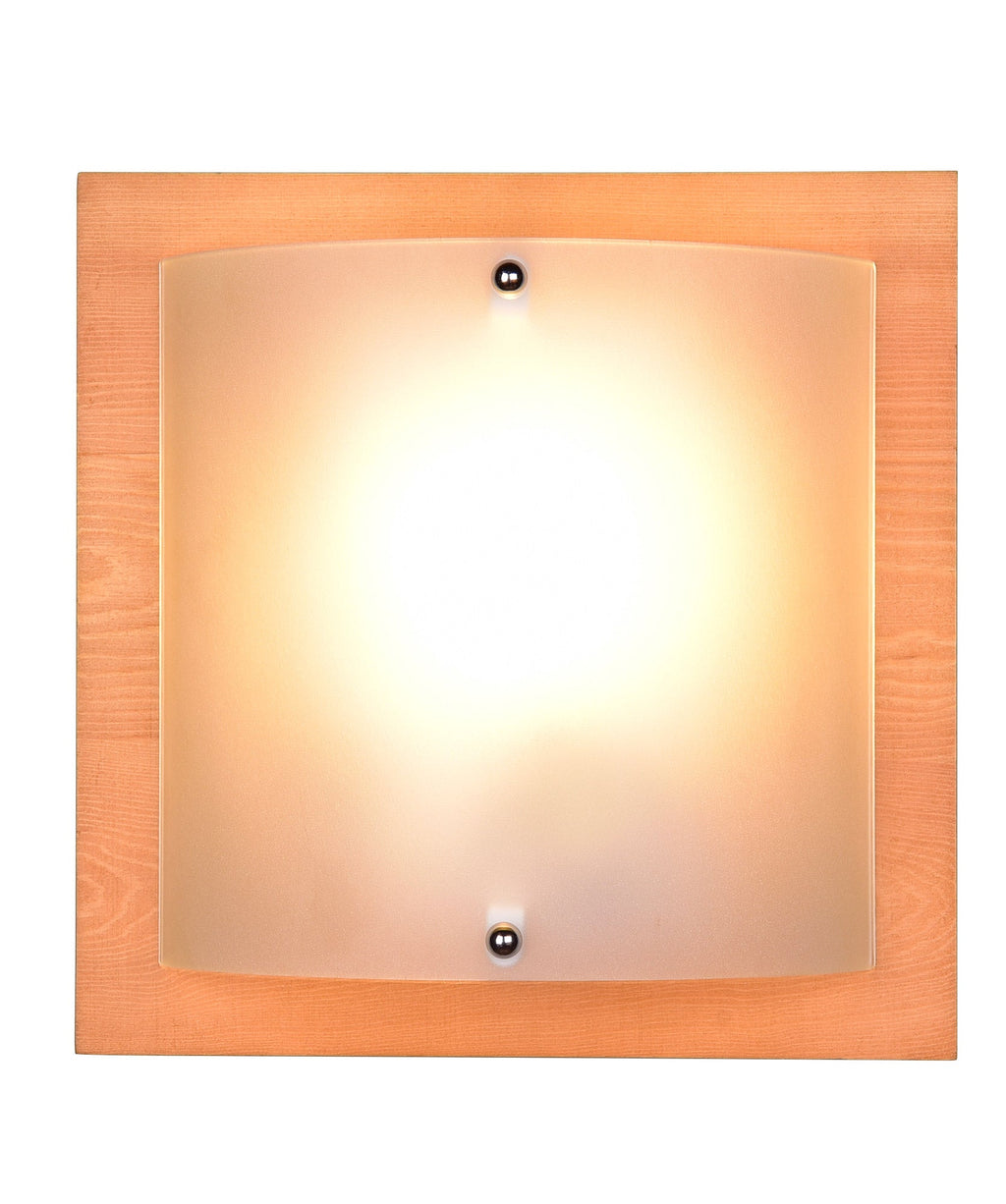 Pali Applique Legno Naturale e Vetro Bianco 25Cm X 25Cm
