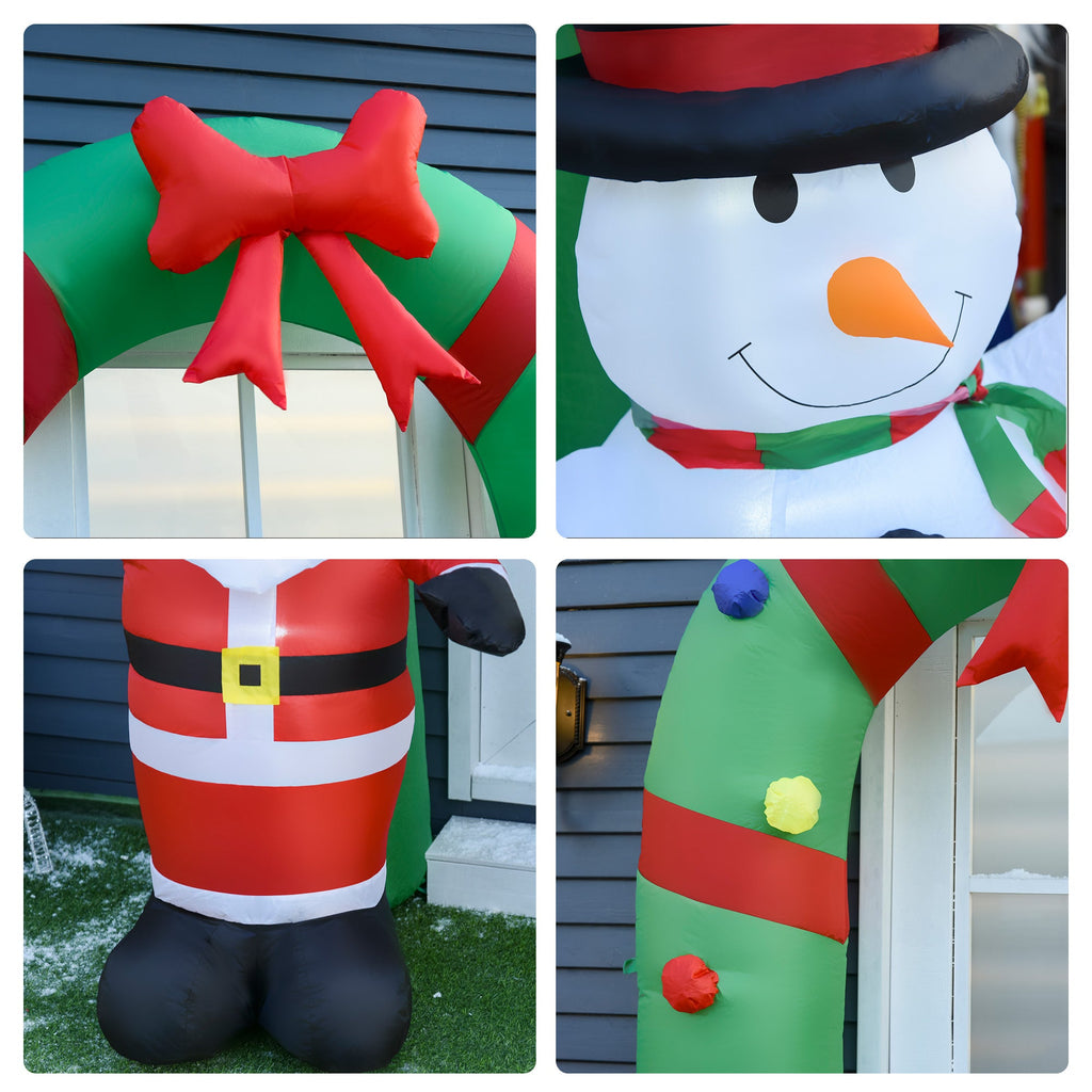 Arco Natalizio Gonfiabile H244 cm con Luci LED Babbo Natale e Pupazzo di Neve per Esterno