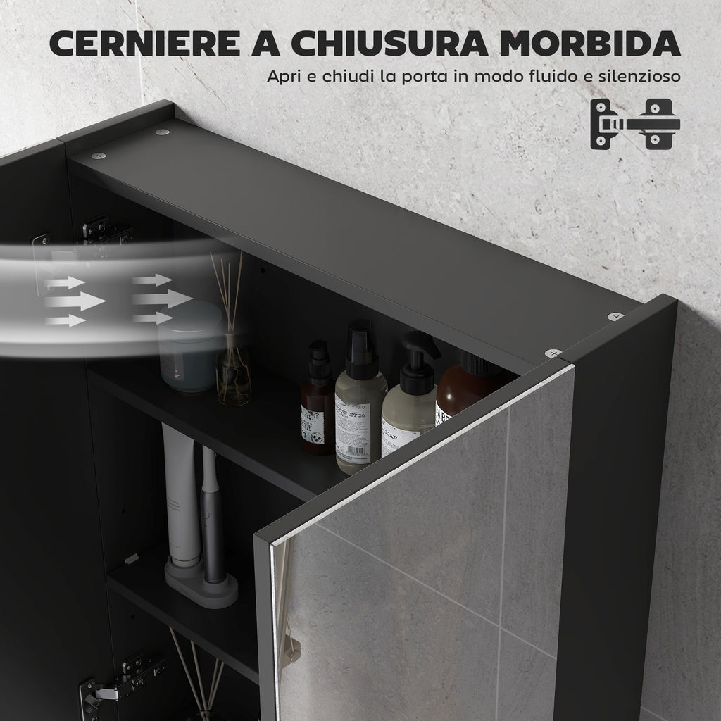 Armadietto a Specchio per Bagno 60x15x75 cm Struttura in MDF Nero