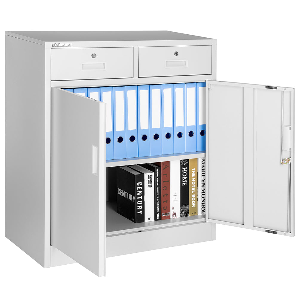 Armadietto Metallico Porta Documenti 2 Ante 2 Cassetti per Ufficio/Casa in Acciaio Grigio