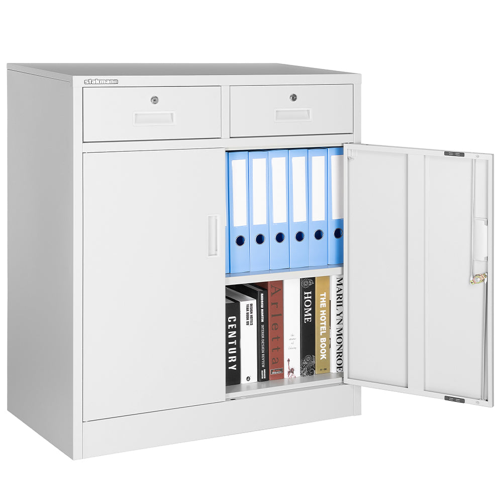 - 1 x Armadietto in Acciaio Porta Documenti per Ufficio/Casa con Serratura 2 Cassetti