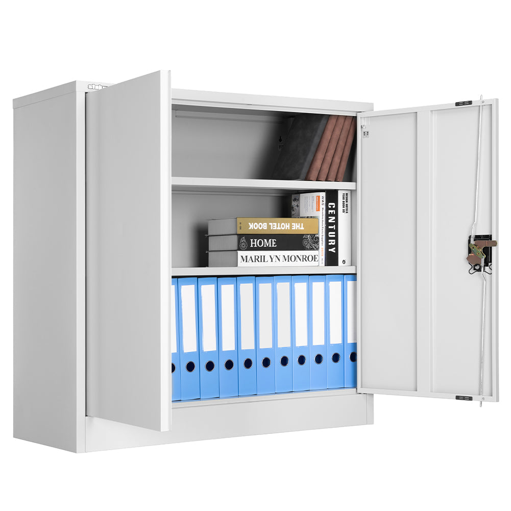 Armadietto Metallico Porta Documenti 2 Ante per Ufficio/Casa con Serratura in Acciaio Grigio