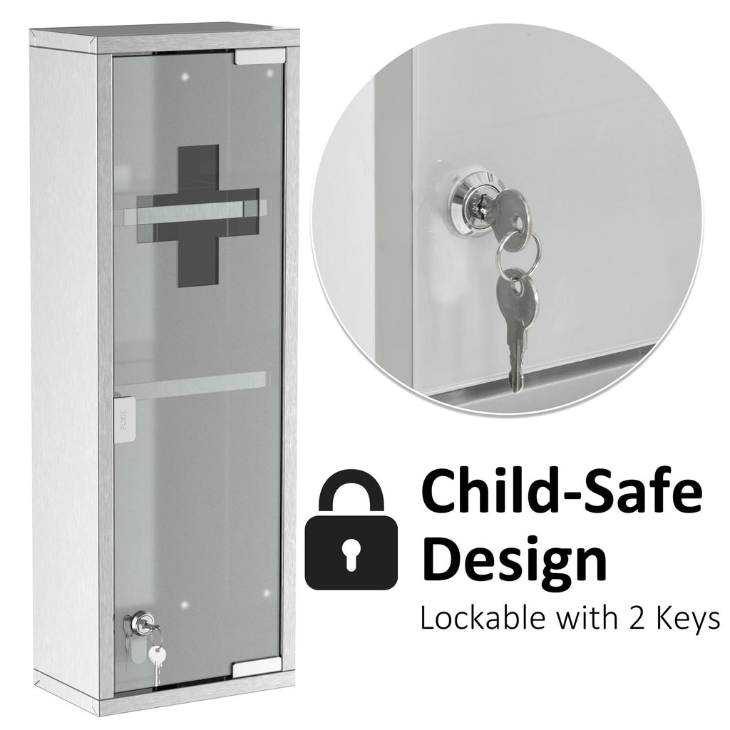 Per le famiglie con bambini e animali domestici, è importante tenere le medicine in un luogo sicuro e lontano dalla loro portata. E l'armadietto con 2 chiavi, ti può aiutare a risolvere questo problema. Realizzato in acciaio inox, è progettato per essere usato in ambienti umidi (come il bagno). All'interno, ci sono tre ripiani in cui puoi sistemare tutti i tuoi medicamenti, anche se hanno forme o misure differenti. Sull'antina è presente il simbolo del primo soccorso: evidente e inconfondibile.