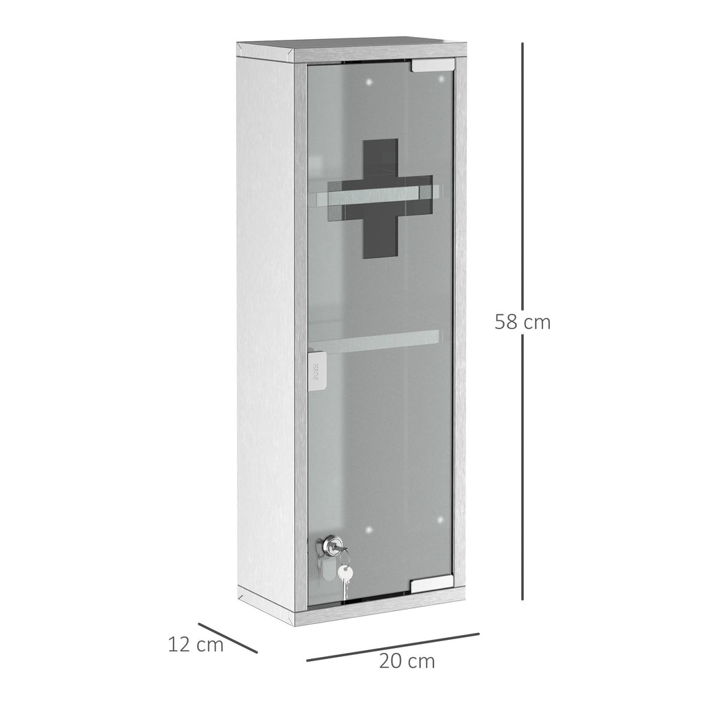Armadietto per Medicinali 20x12x58 cm 3 Ripiani in Acciaio e Vetro Argento
