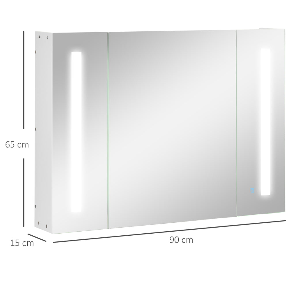 Armadietto Specchiera da Bagno con 3 Armadietti 90x15x65 cm 3 Ripiani e Luce LED Bianco