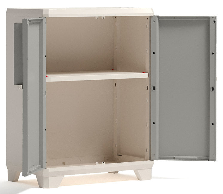 Grazie al suo design essenziale, Linear Wood è la soluzione perfetta per arredare i tuoi spazi. Per una flessibilità massima, l'armadio è dotato di un ripiano con portata massima di 15 Kg ciascuno. Le ante e la maniglie presentano una caratteristica finitura effetto legno. È dotato di maniglie con comoda impugnatura, di piedini regolabili e di chiusura con predisposizione per il lucchetto. La facilità di assemblaggio rende questo armadio una soluzione estremamente versatile.
