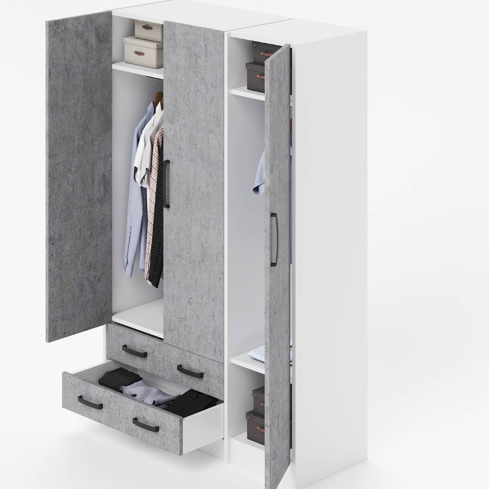Armadio 210x135x52 cm 3 ante e 2 cassetti bianco frassinato