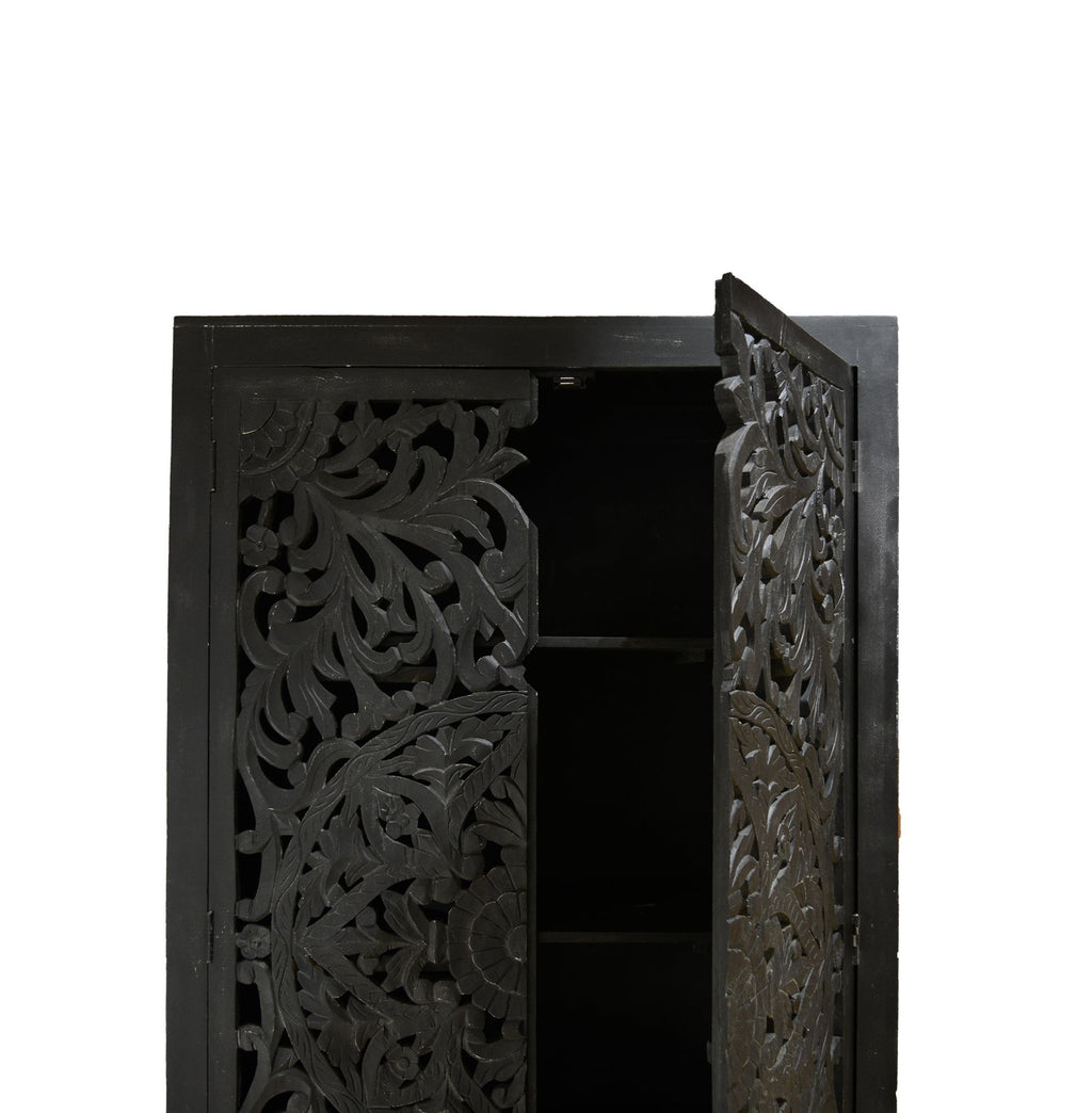 Alvar è un armadio dal design incredibile, le ante infatti sono totalmente decorate con eleganti fregi che ricordano design orientali o indiani. Tali fregi regalano all'armadio un'allure unico e originale, dal sapore vintage, che si propagherà per tutta la stanza nella quale verrà collocato. Ideale per una stanza da letto o anche per un ingresso, sarà l'eyecatcher perfetto.
