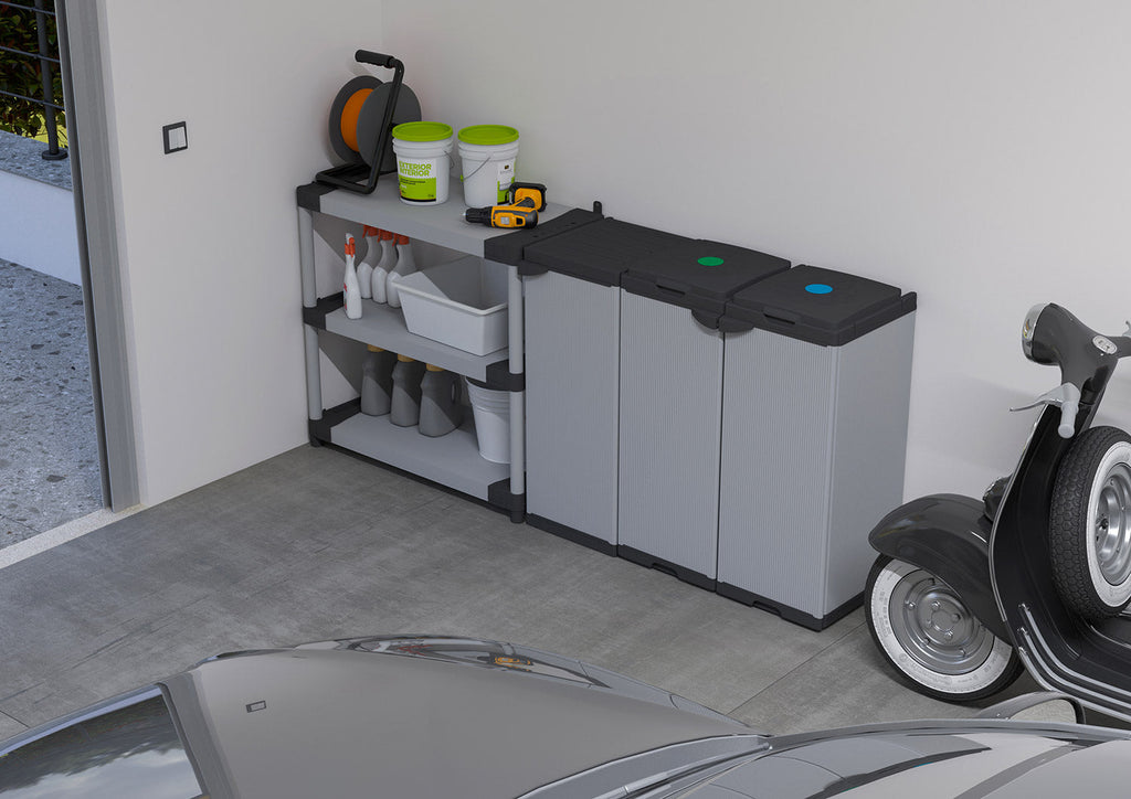 L’armadio, di dimensioni 34L x 40Px 165H cm, dotato di una singola anta e tre ripiani, è la soluzione perfetta per organizzare e ottimizzare lo spazio di ambienti interni o esterni. I ripiani ed i pannelli sono in resina di PVC; base, copertura superiore, copertura posteriore, montanti e maniglie in resina di PP. Tutti i materiali usati per la realizzazione di questo prodotto sono di seconda vita certificati. Pratico, compatto e semplice da montare. Il montaggio non prevede l’utilizzo di viti o attrezzi ed è spiegato da un foglio di istruzioni illustrato. L’armadio fa parte della serie Modular System, in quanto è predisposto ad essere unito in serie ad altri articoli della linea Storage del marchio Mongardi.