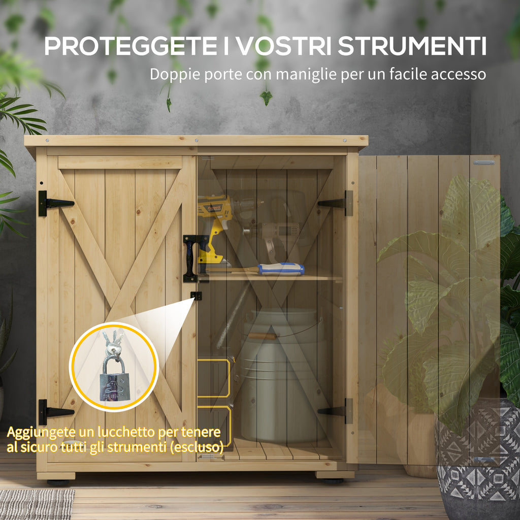 - Armadio da giardino realizzato in legno d'abete per offrire una maggiore robustezza
