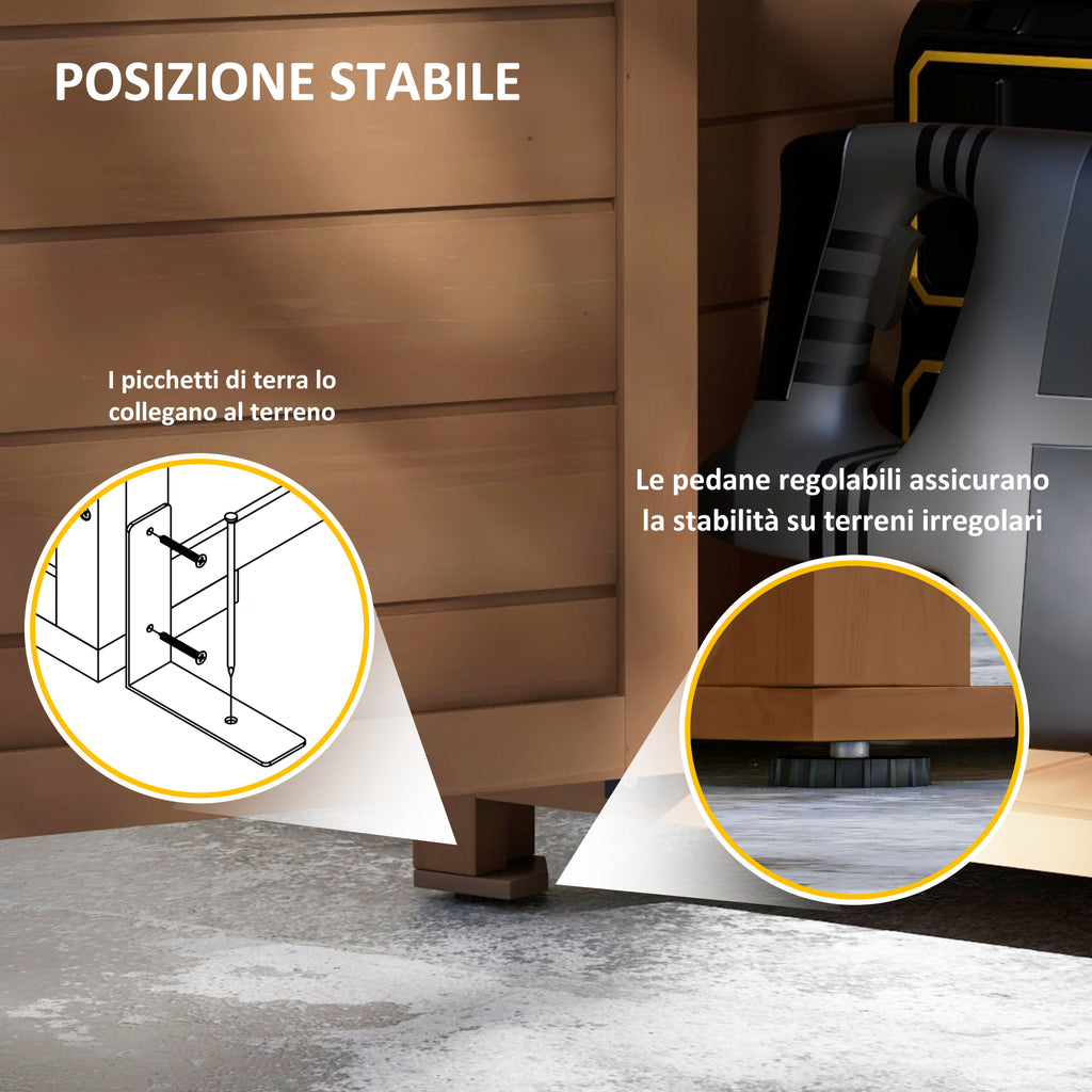 - STRUTTURA STABILE: Realizzato in spesso legno di abete, questo armadio da giardino è in grado di resistere in maniera ottimale al meteo esterno. Le pedane regolabili assicurano invece una posizione stabile anche su terreni irregolari