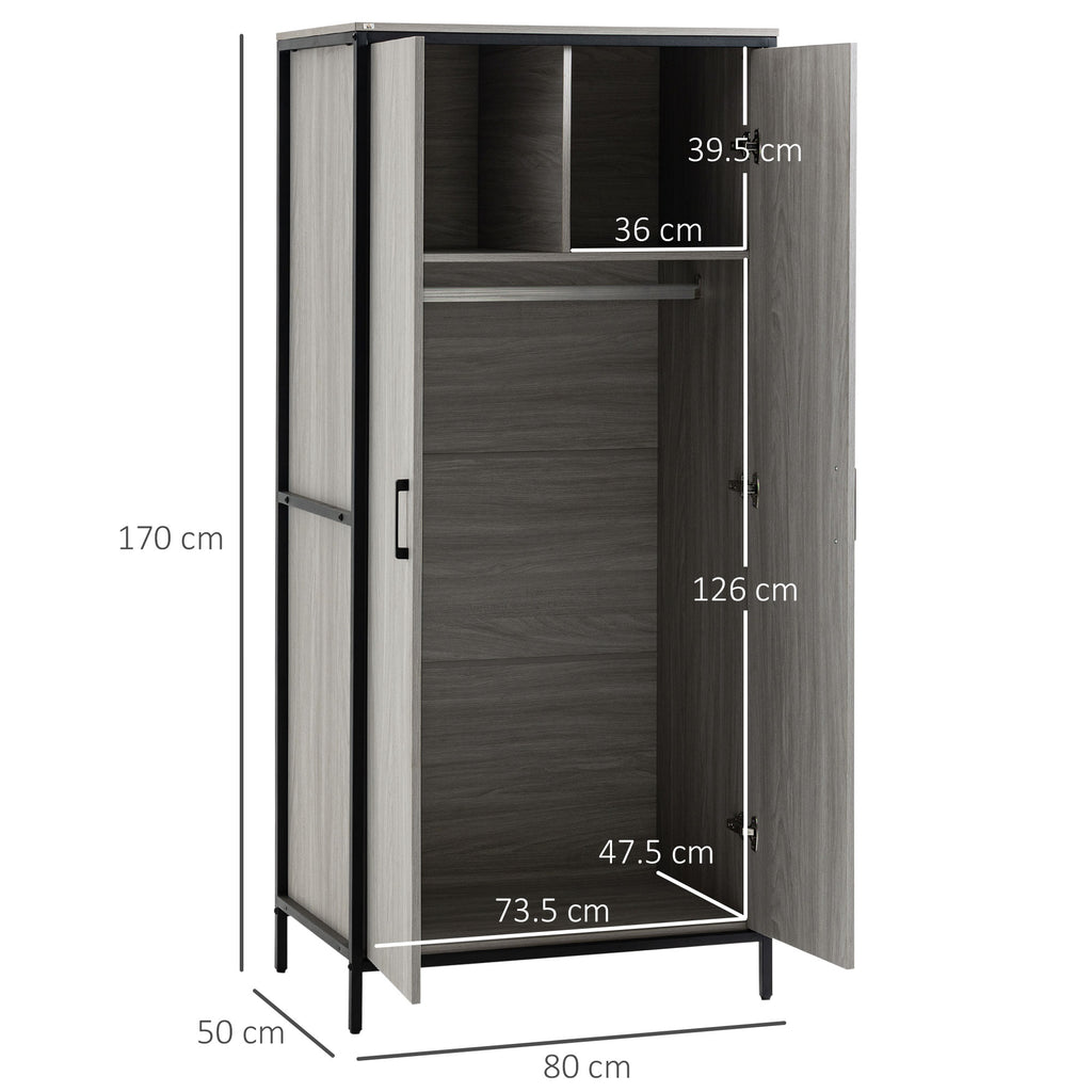 Armadio Guardaroba 2 Ante 80x50x179 cm in Legno MDF e Acciaio Grigio