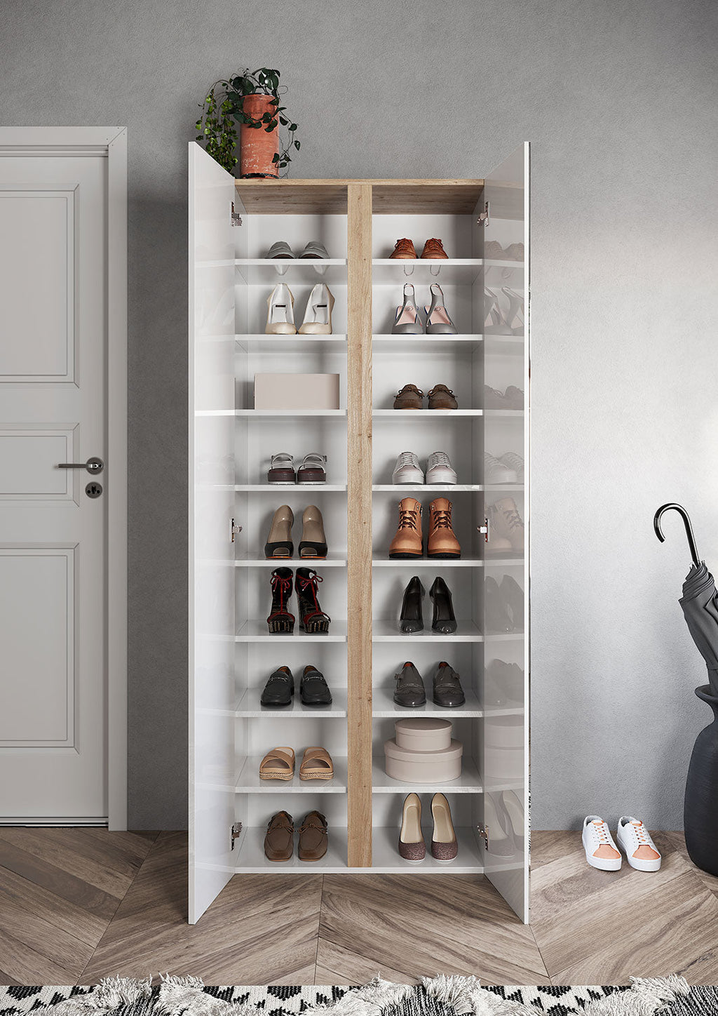 Giordanoshop - Cod: 308612 Mobile Multiuso 2 Ante con 5 Ripiani 70x35x111 cm Frame Bianco Lucido e Cadiz