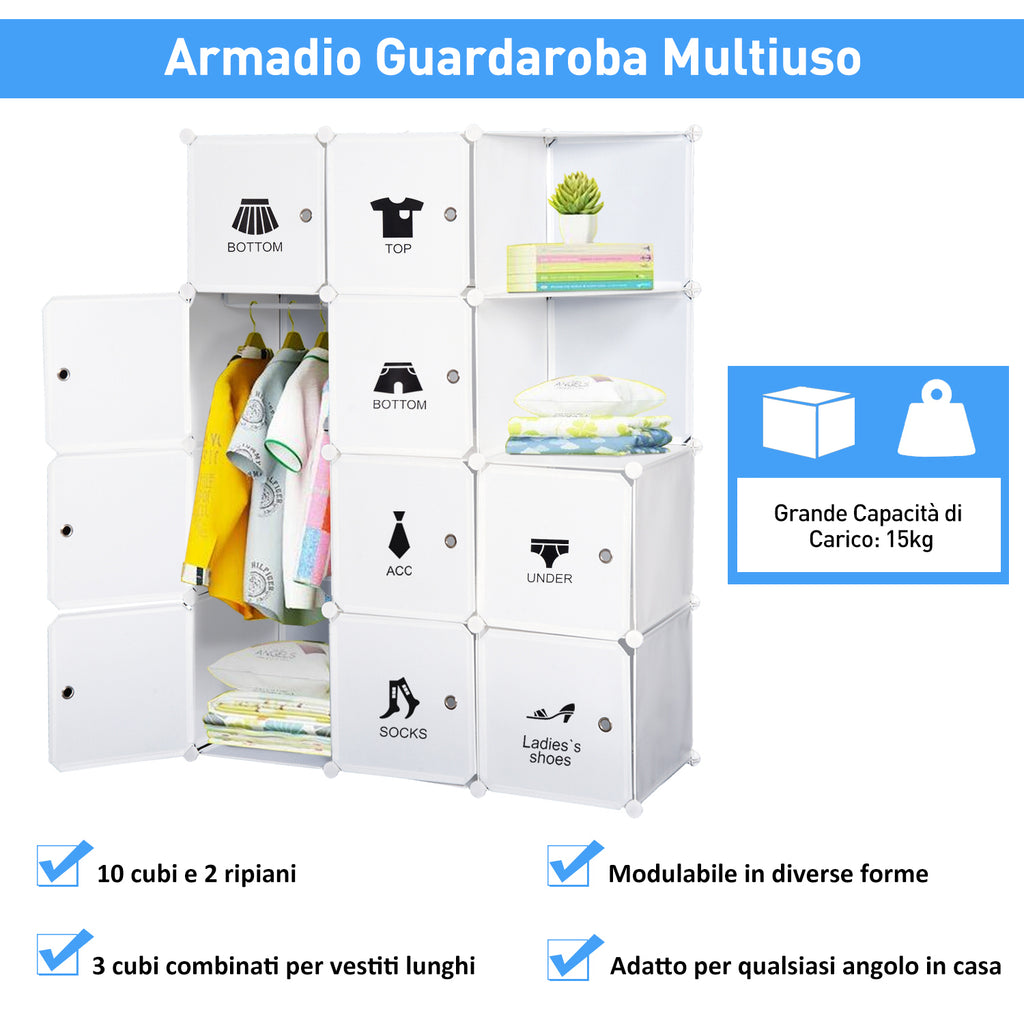 Armadio Guardaroba Modulare 10 Cubi Bianco 111x47x145 cm