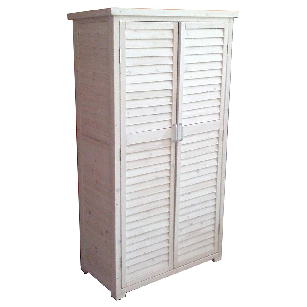 Armadio Mobile Mobiletto da Giardino in Legno 3 Ripiani e 2 Ante per Esterno Bianco