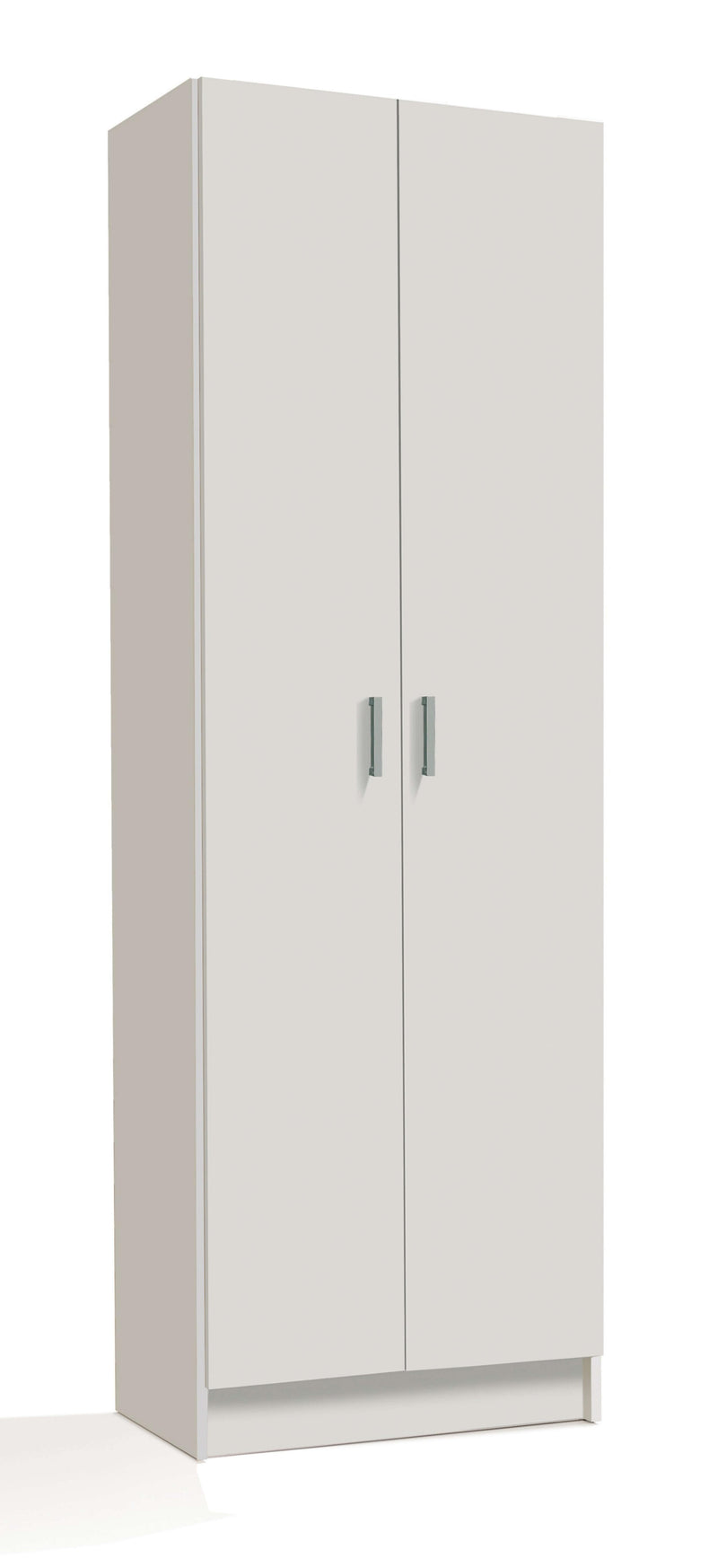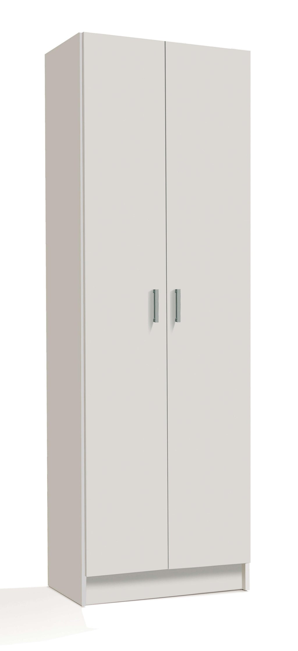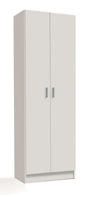 L'armadio è realizzato i materiale melaminico con finitura bianco opaco, pratico e resistente, perfetto per tutti gli ambienti di zervizio oltre che per la casa, dotato di un'anta con maniglia.