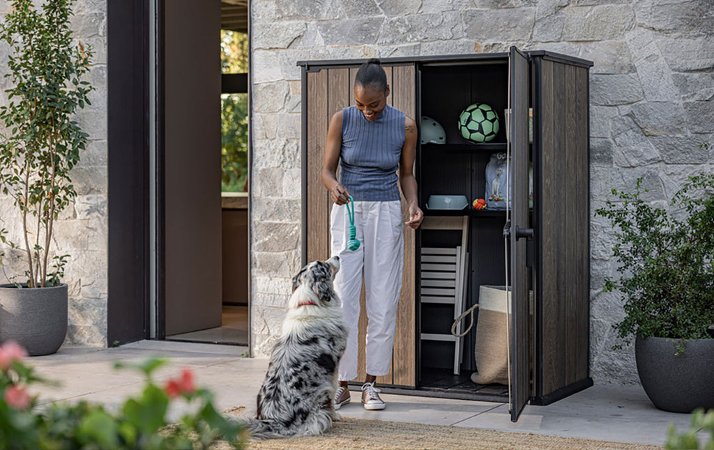 Keter Signature Vertical Shed Walnut Armadio Porta Attrezzi Da Esterno