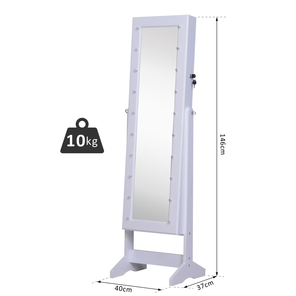 Armadio Portagioie a Specchio con 20 Luci LED Bianco 40x37x146 cm