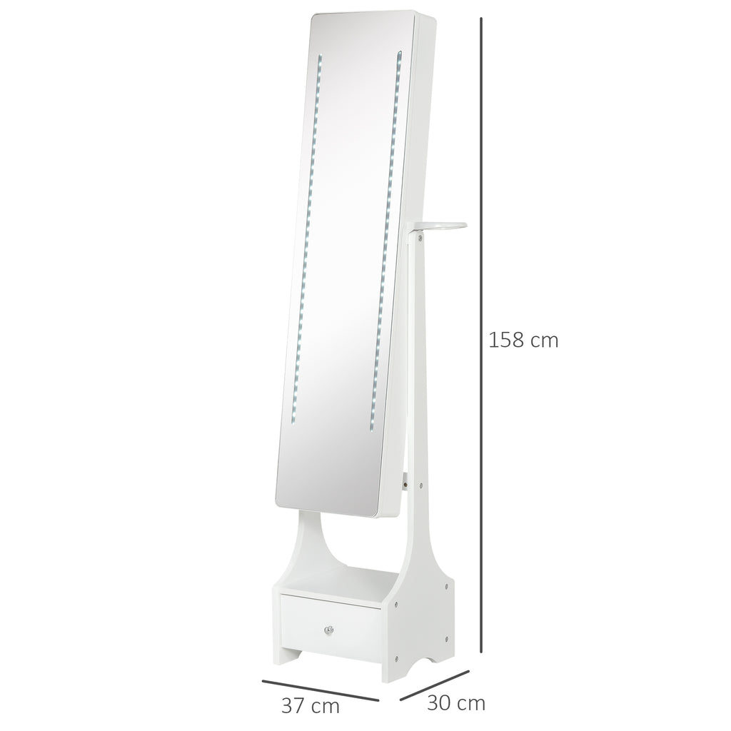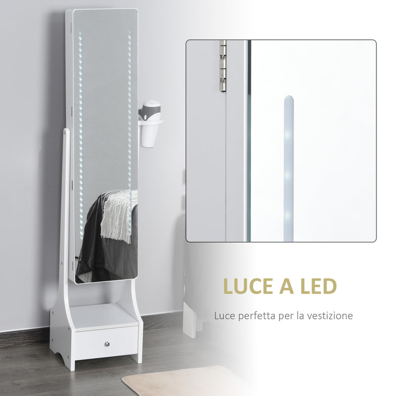 Armadio Portagioie a Specchio con Luci LED 37x30x158 cm in MDF Bianco