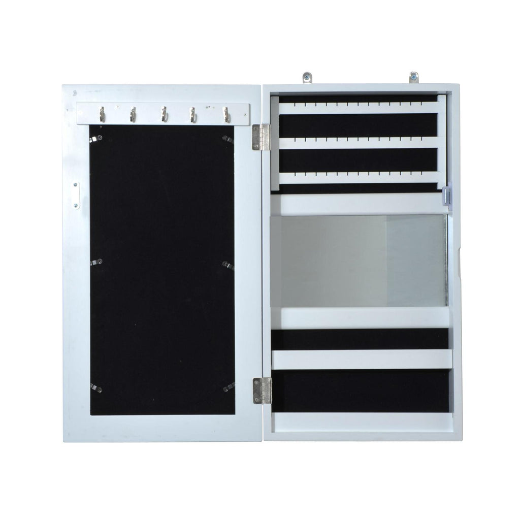 Armadio Portagioie con Specchiera da Parete in Legno Bianco 31x56x8.5 cm