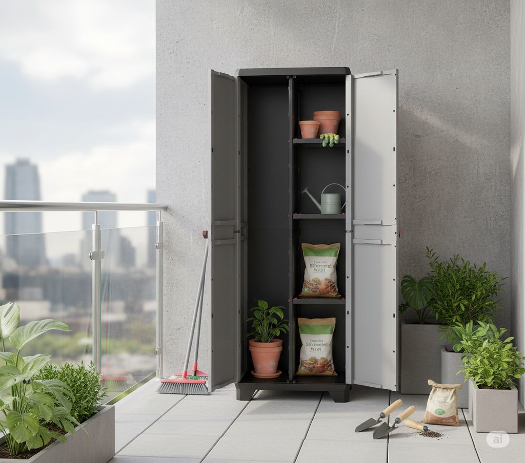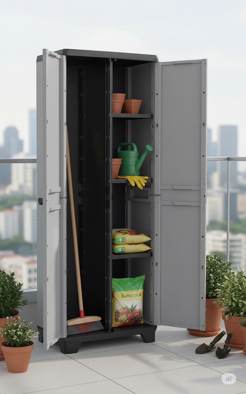 Armadio Portascope da Esterno 3 Ripiani 68x39x173H cm in Plastica Keter Stilo Grigio